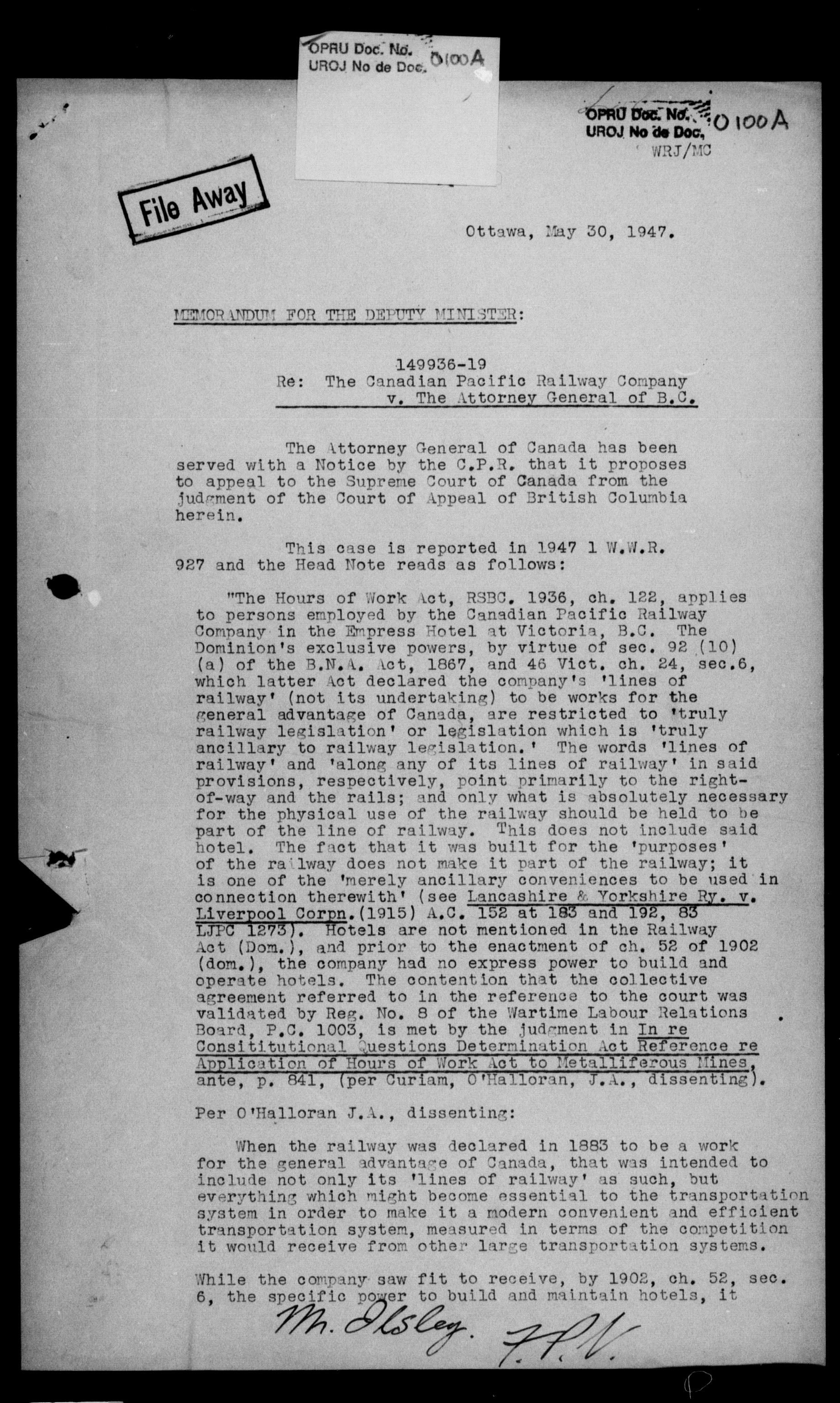 Department of Justice - Legal opinions and material of precedential value (1863-1963) - 10323