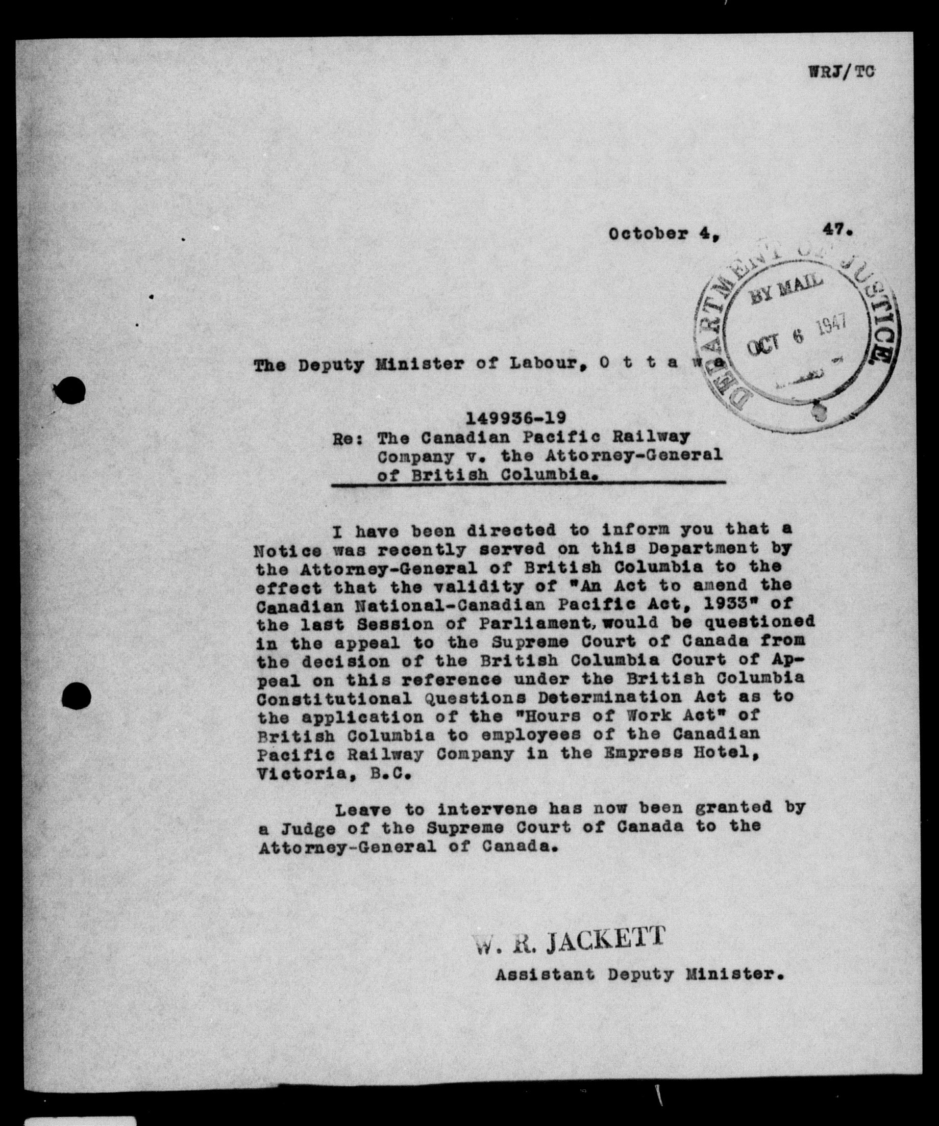 Department of Justice - Legal opinions and material of precedential value (1863-1963) - 10323