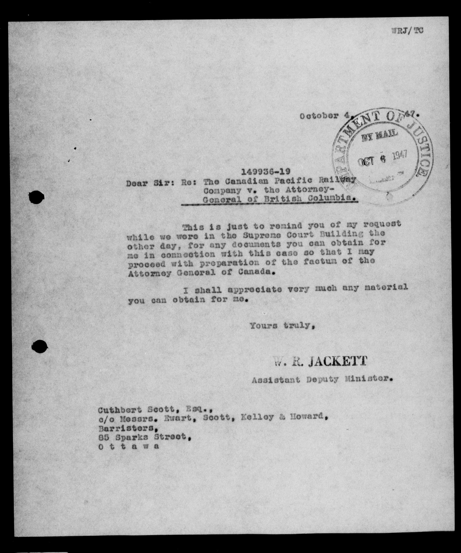 Department of Justice - Legal opinions and material of precedential value (1863-1963) - 10323