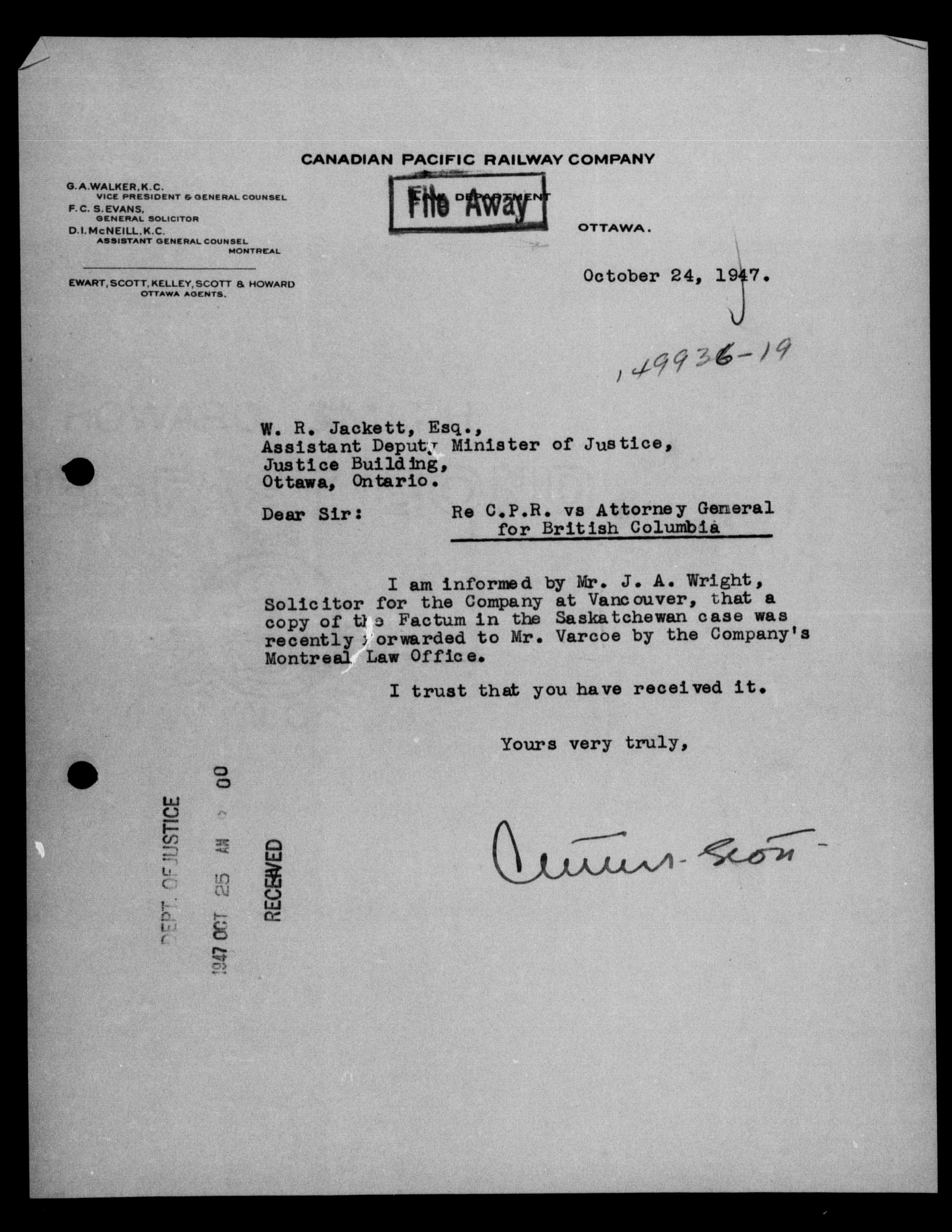 Department of Justice - Legal opinions and material of precedential value (1863-1963) - 10323