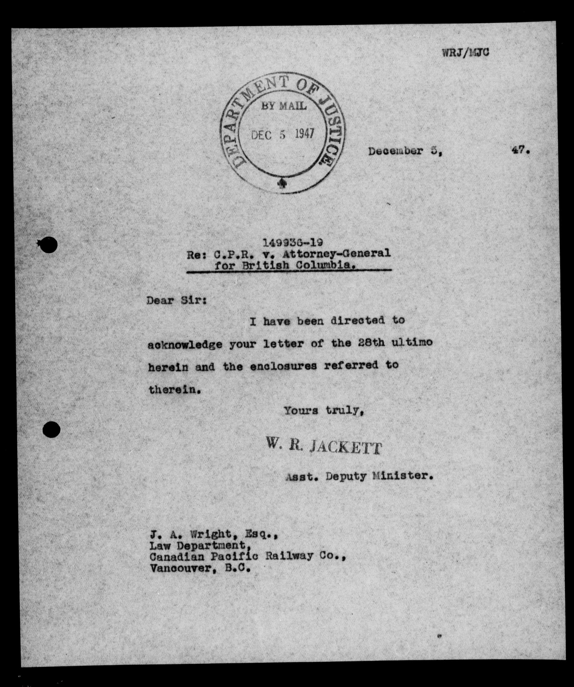 Department of Justice - Legal opinions and material of precedential value (1863-1963) - 10323