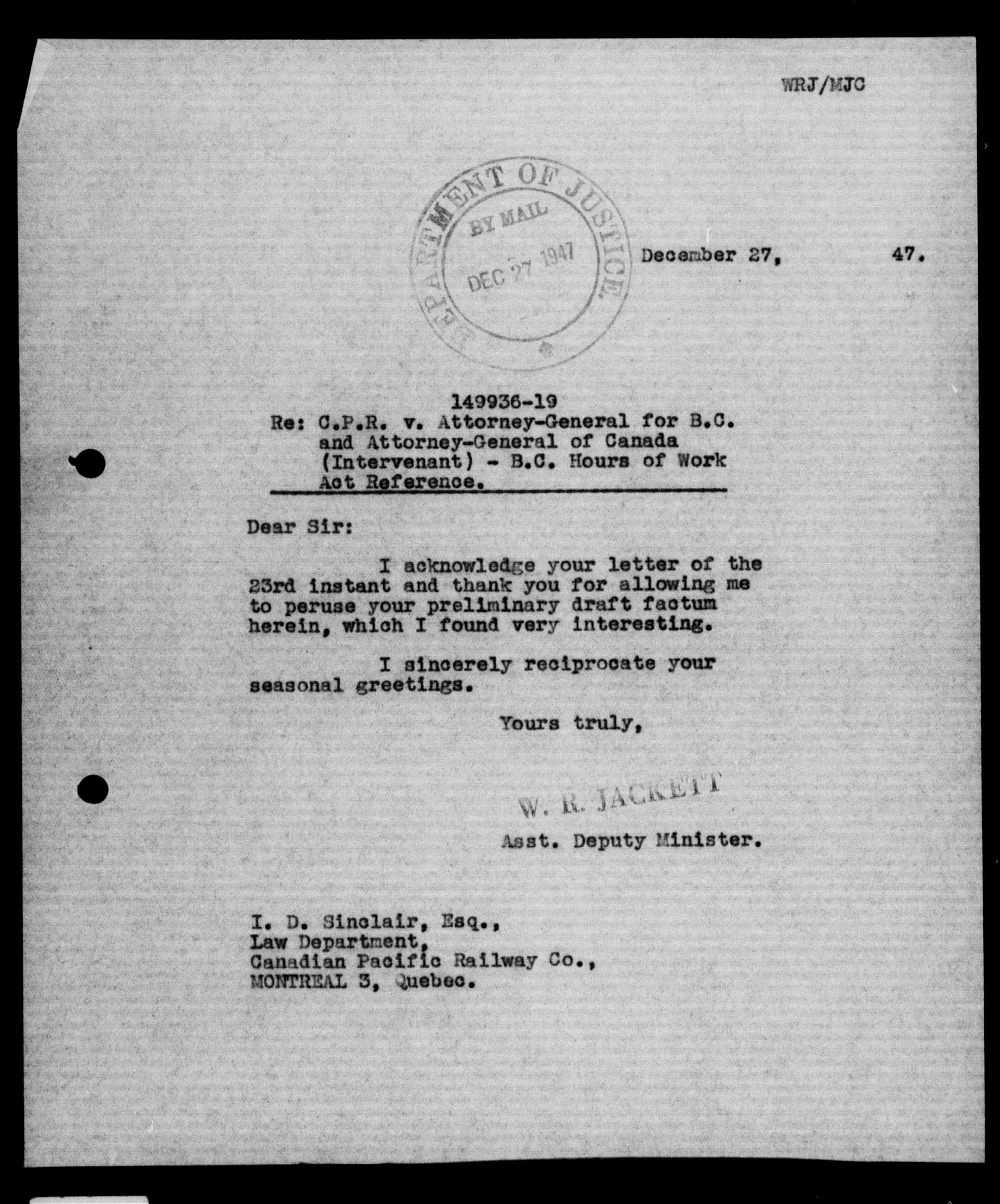 Department of Justice - Legal opinions and material of precedential value (1863-1963) - 10323