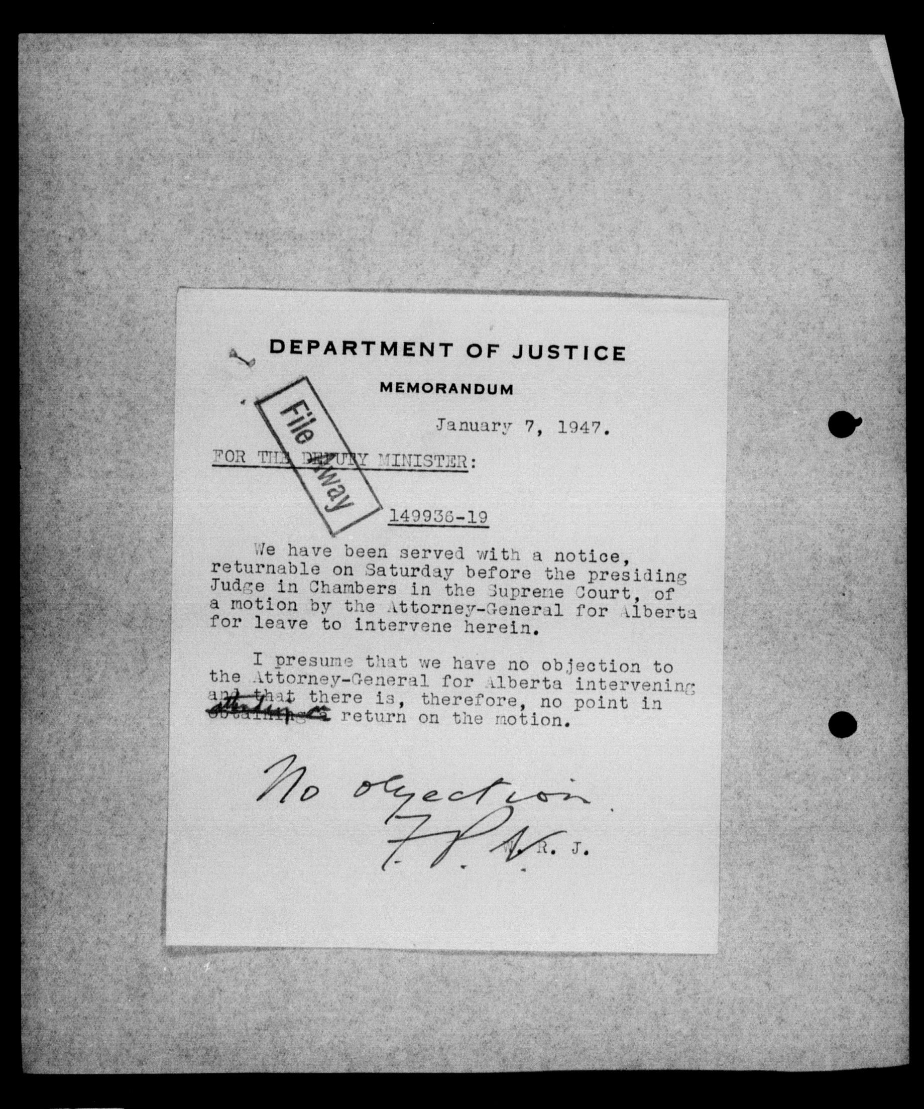 Department of Justice - Legal opinions and material of precedential value (1863-1963) - 10323
