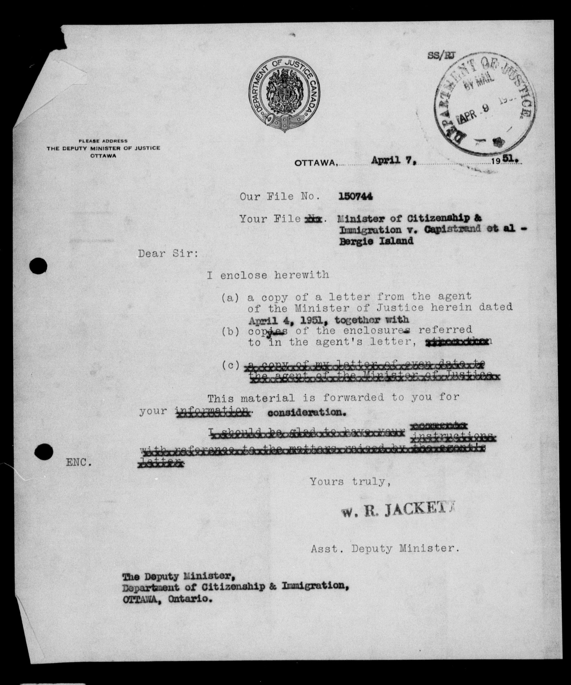 Department of Justice, Central Registry : legal opinions and material of precedential value : T-10327