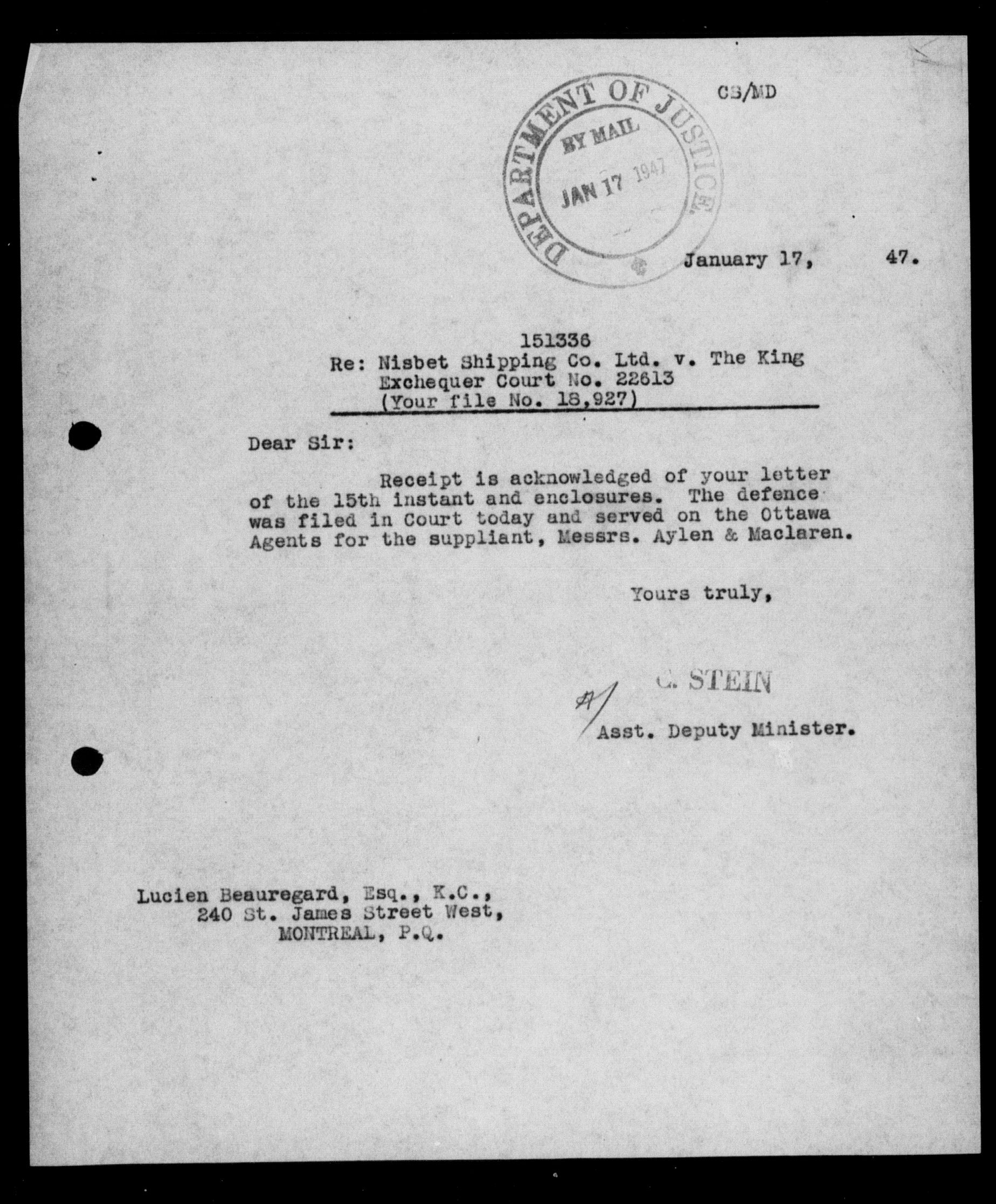 Department of Justice - Legal opinions and material of precedential value (1863-1963) - 10329