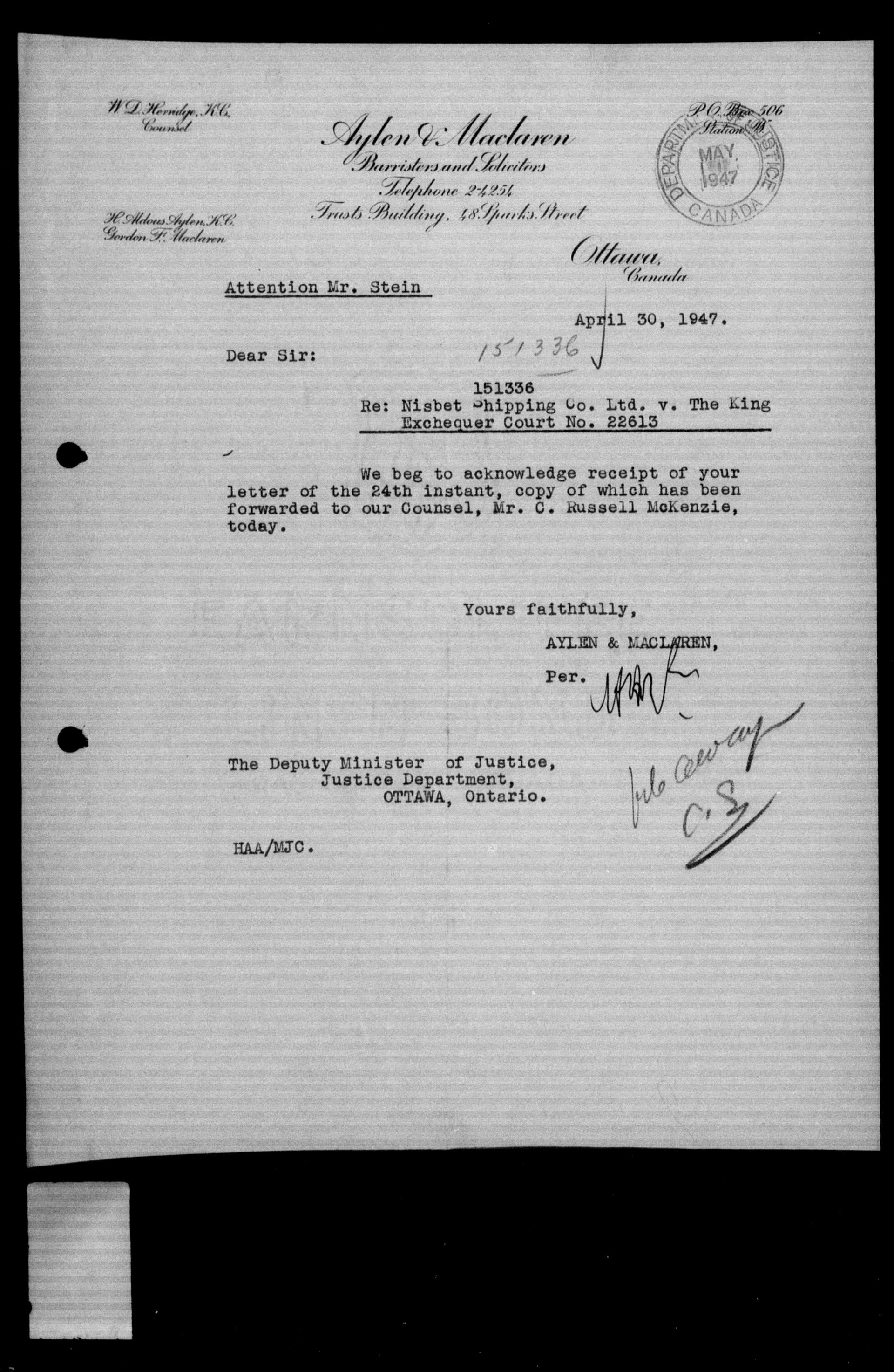 Department of Justice - Legal opinions and material of precedential value (1863-1963) - 10329