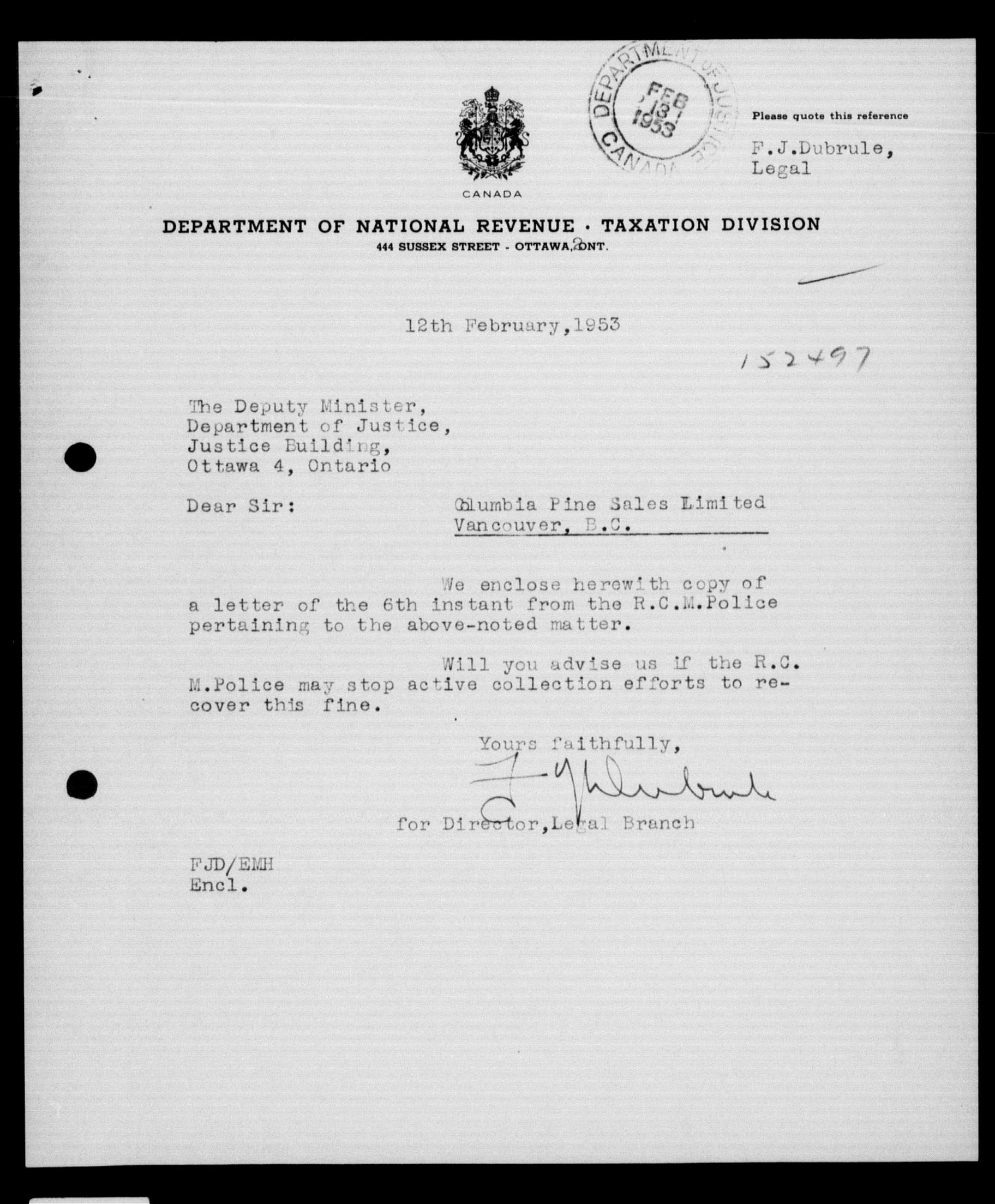 Department of Justice - Legal opinions and material of precedential value (1863-1963) - 10332