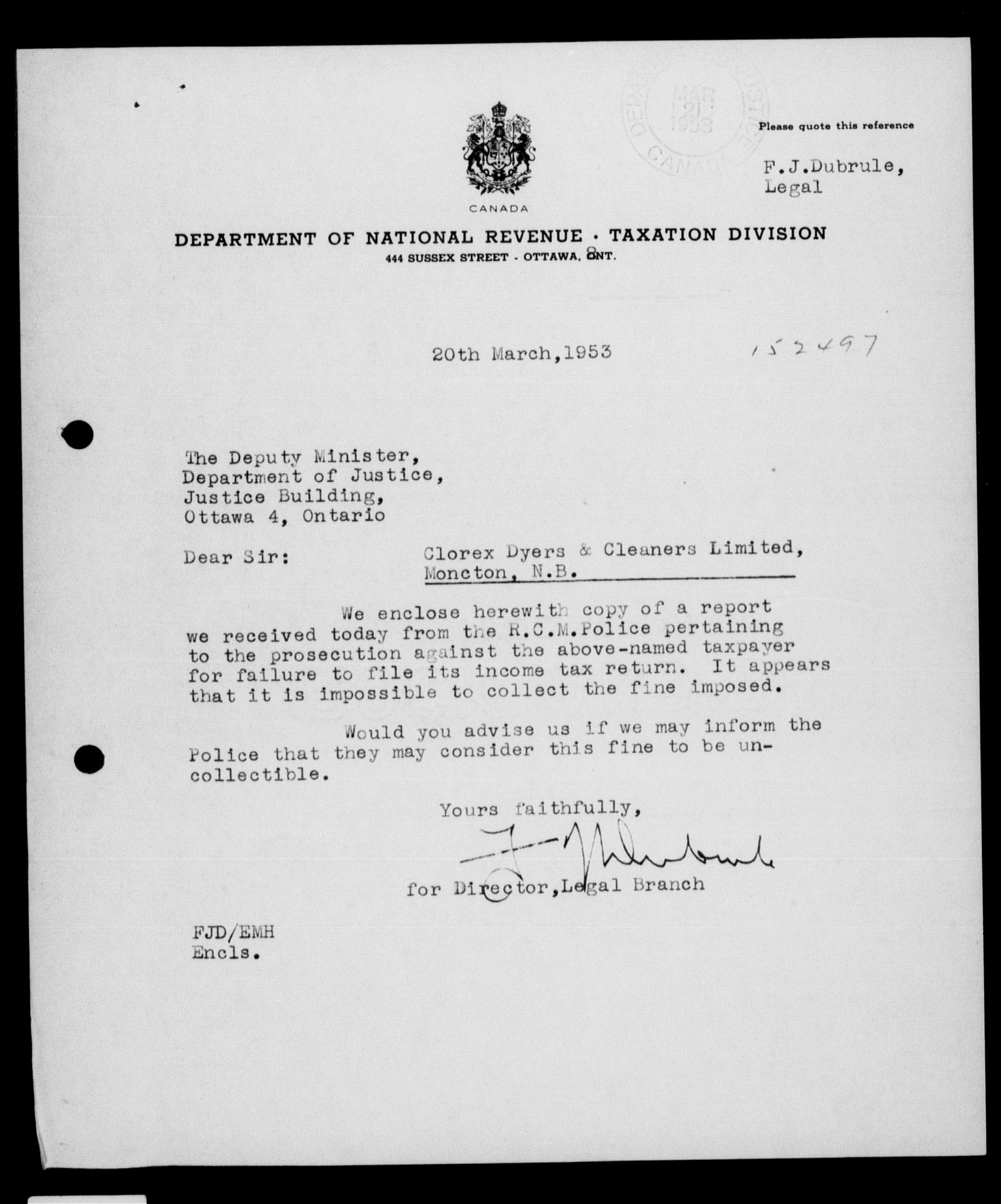 Department of Justice - Legal opinions and material of precedential value (1863-1963) - 10332