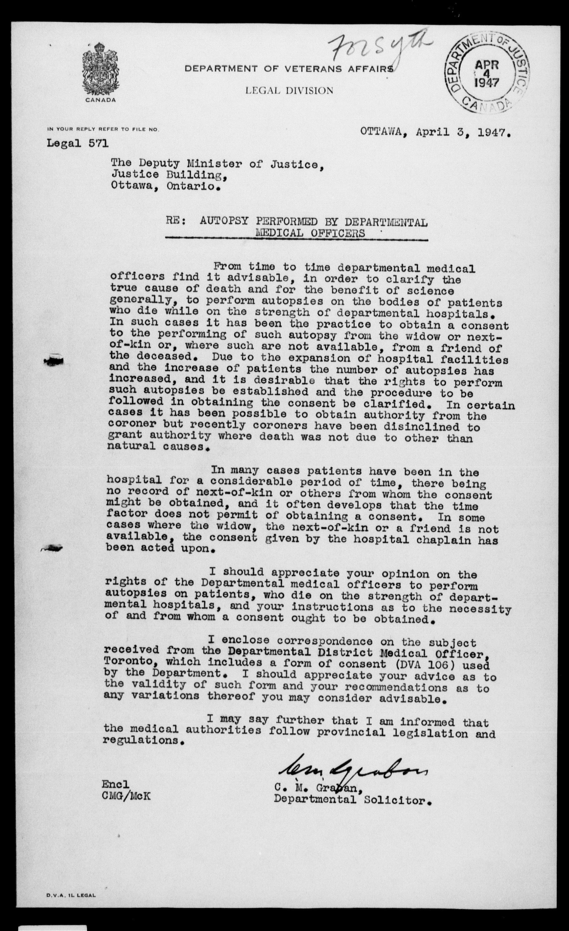 Department of Justice - Legal opinions and material of precedential value (1863-1963) - 10332