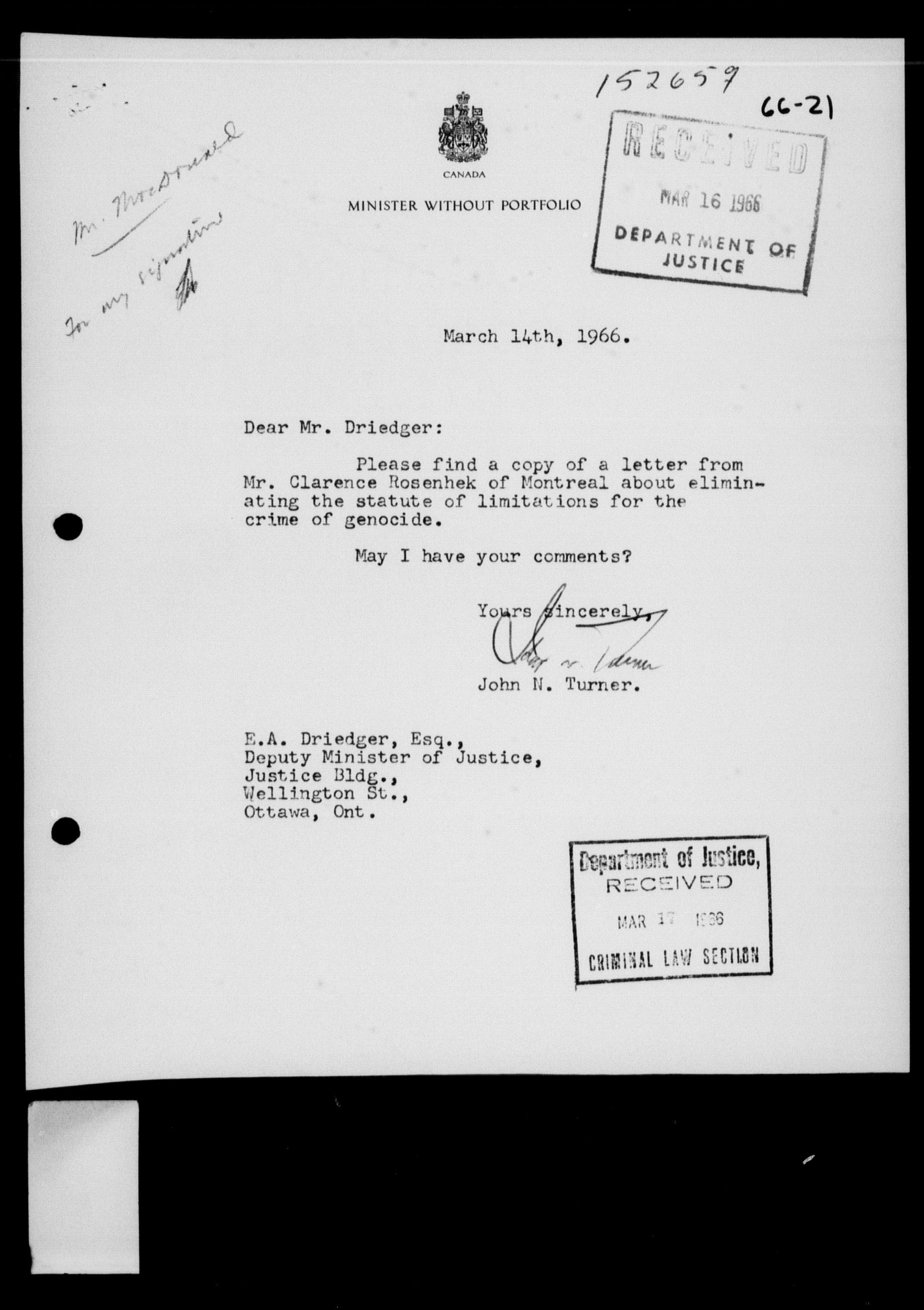 Department of Justice, Central Registry : legal opinions and material of precedential value : T-10333