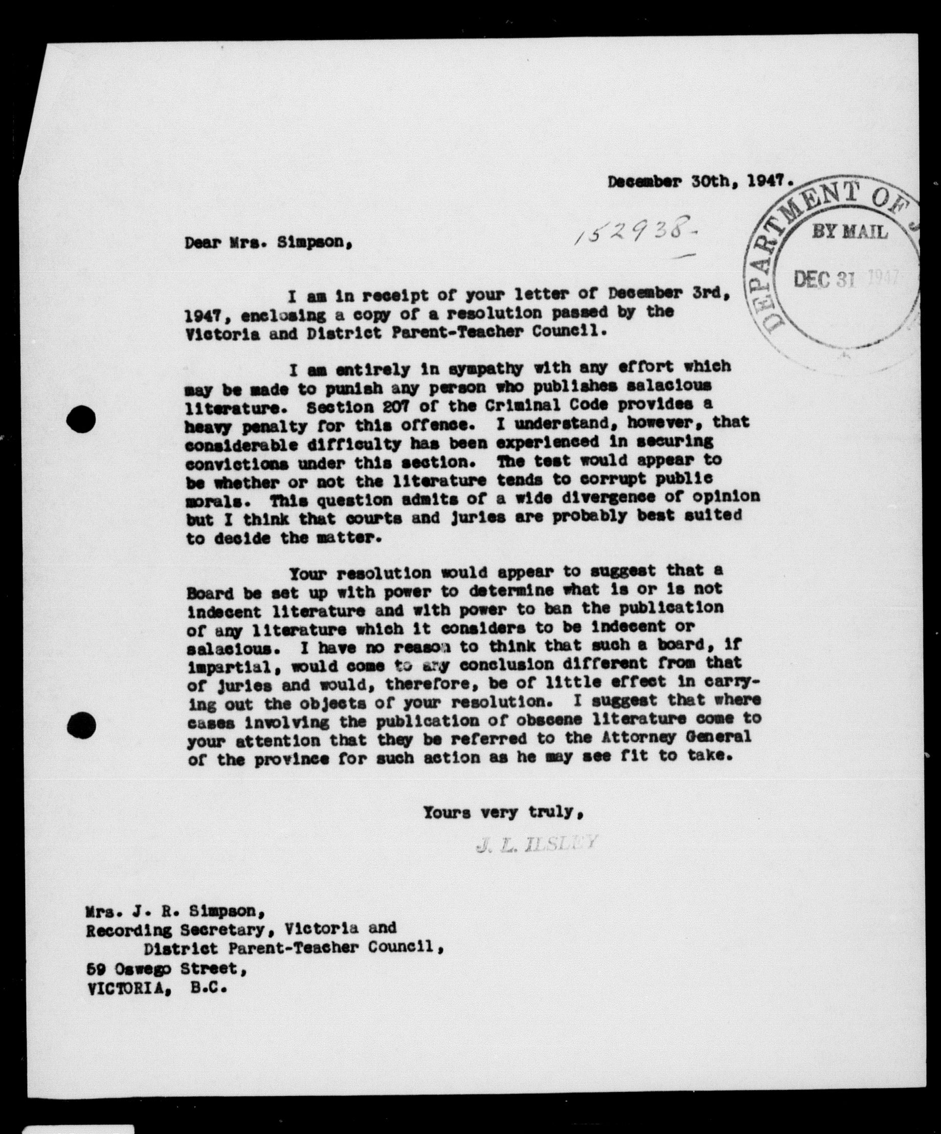 Department of Justice - Legal opinions and material of precedential value (1863-1963) - 10335