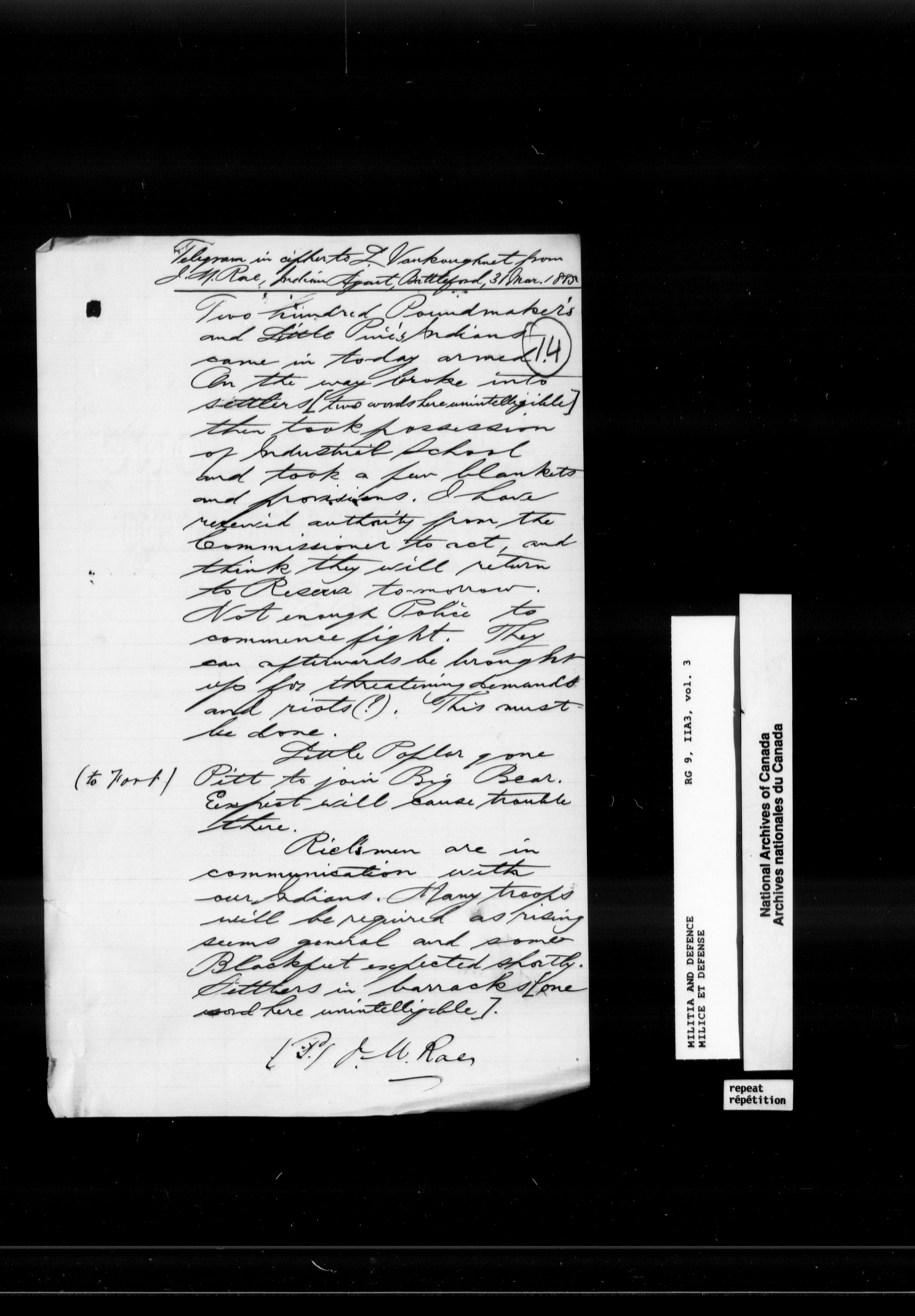 Department of Militia and Defence : Records relating to the North West Rebellion, 1880-85 : T-10394