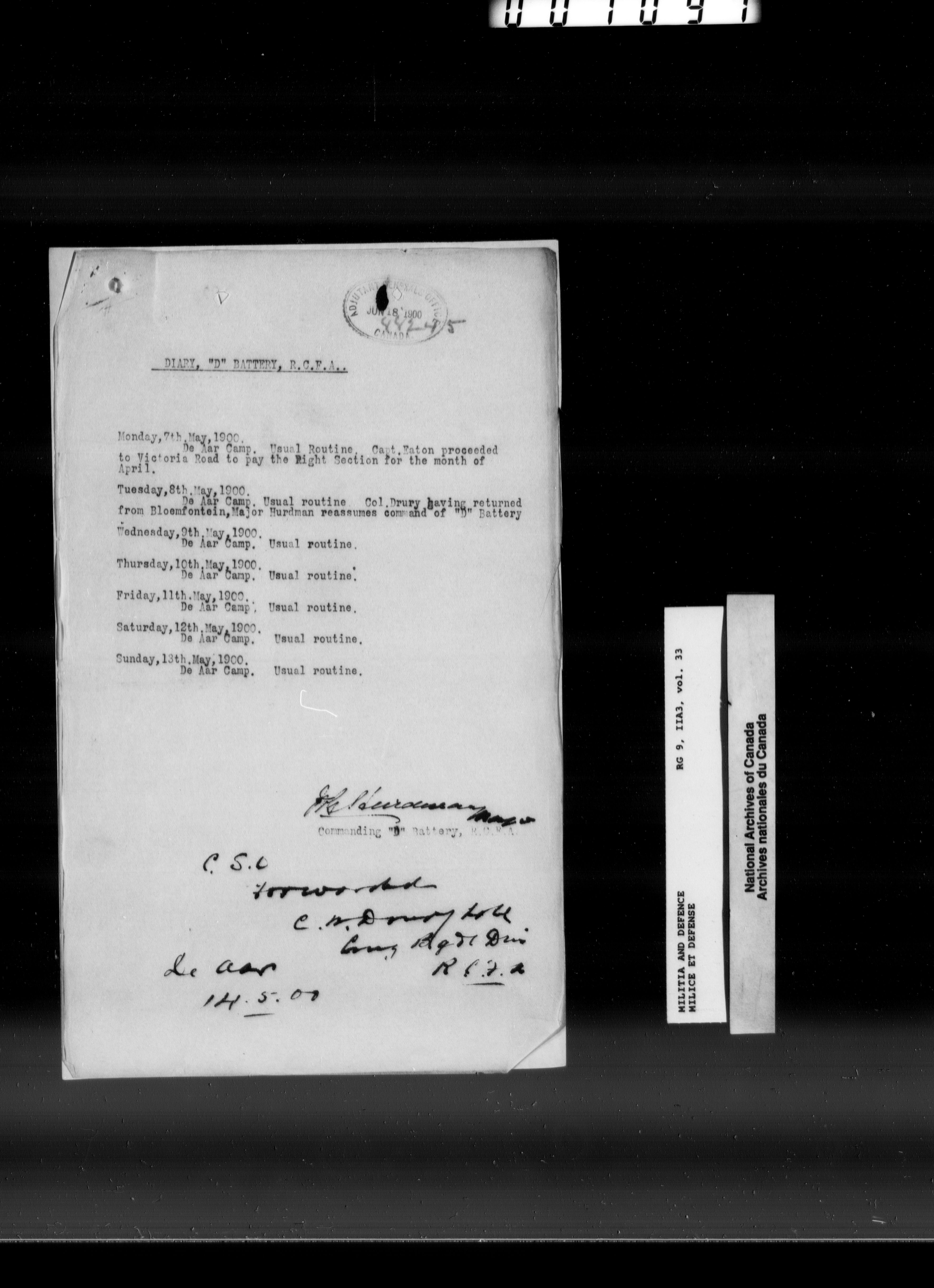 Department of Militia and Defence : Records relating to the Special Service Force sent to South Africa : T-10404