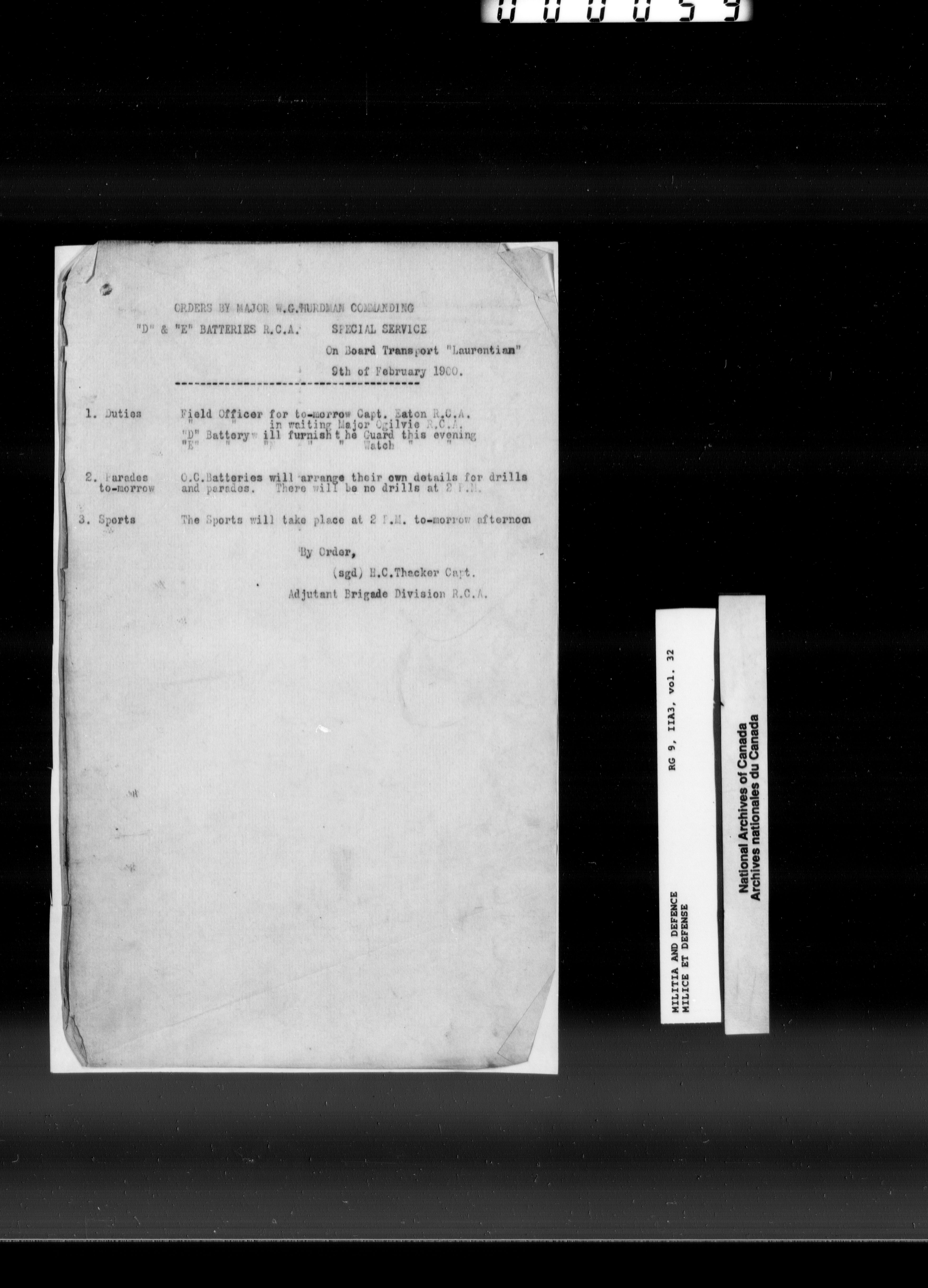 Department of Militia and Defence : Records relating to the Special Service Force sent to South Africa : T-10404