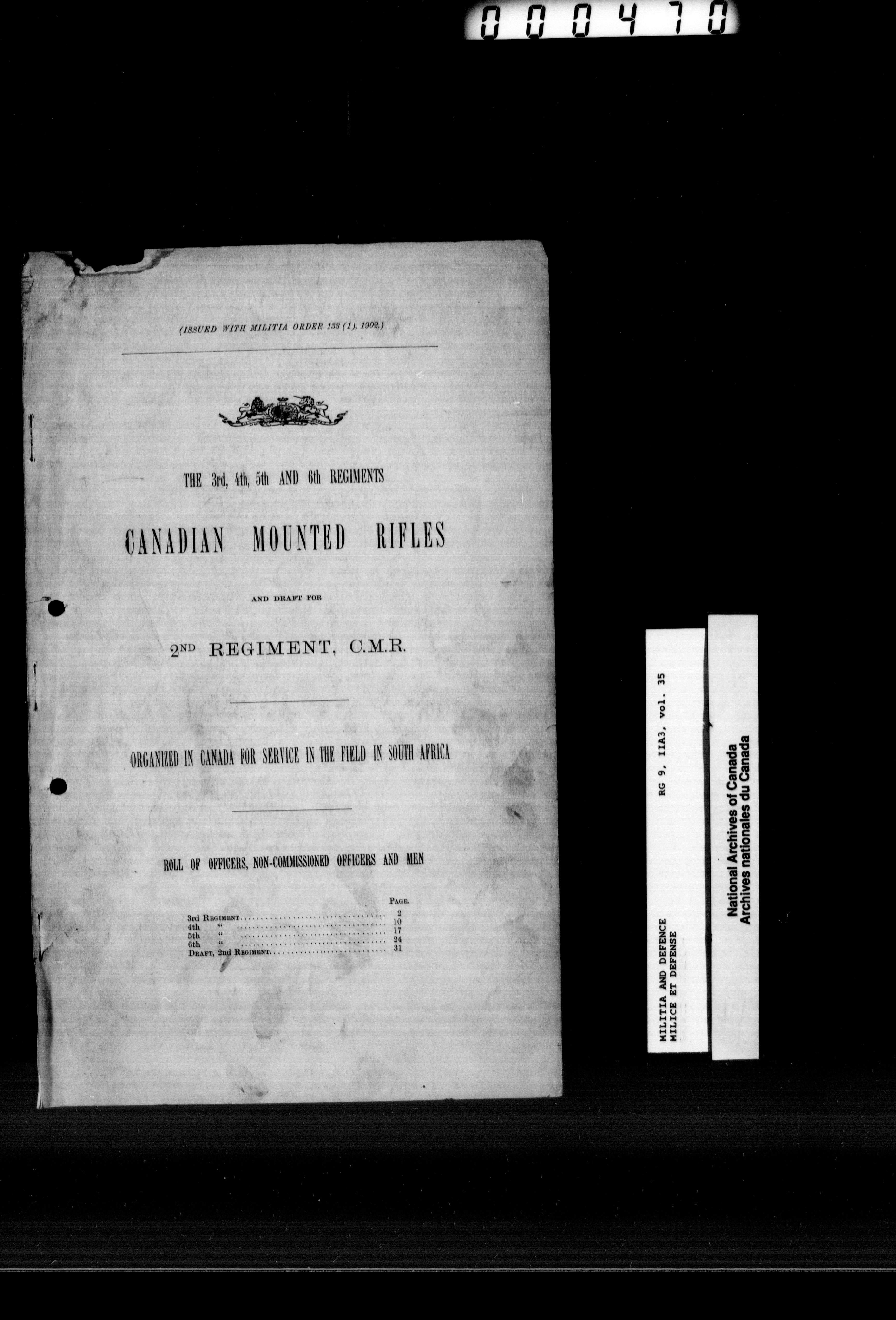 Records relating to the Special Service Force sent to South Africa, 1899-1902 - 10405