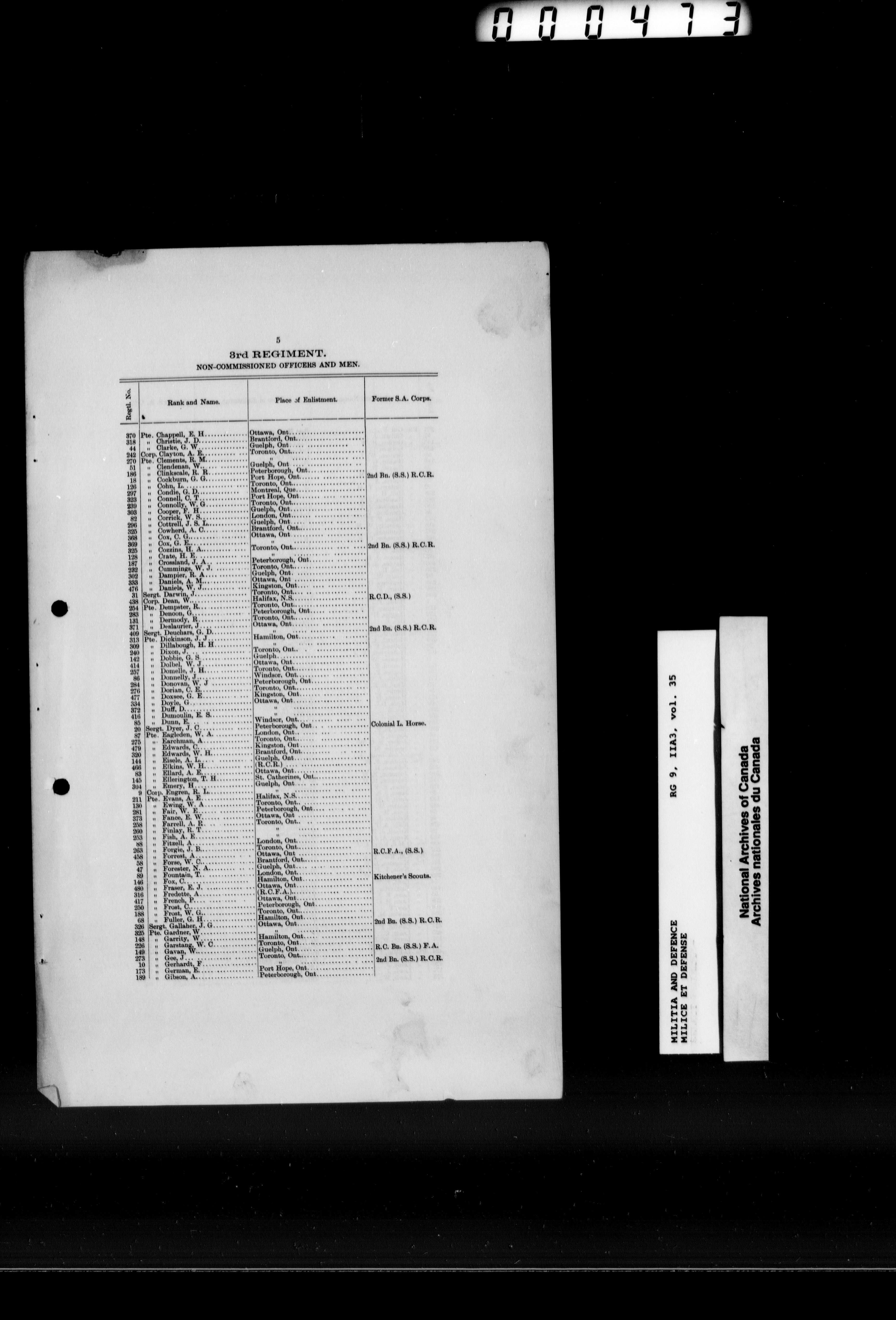 Department of Militia and Defence : Records relating to the Special Service Force sent to South Africa : T-10405