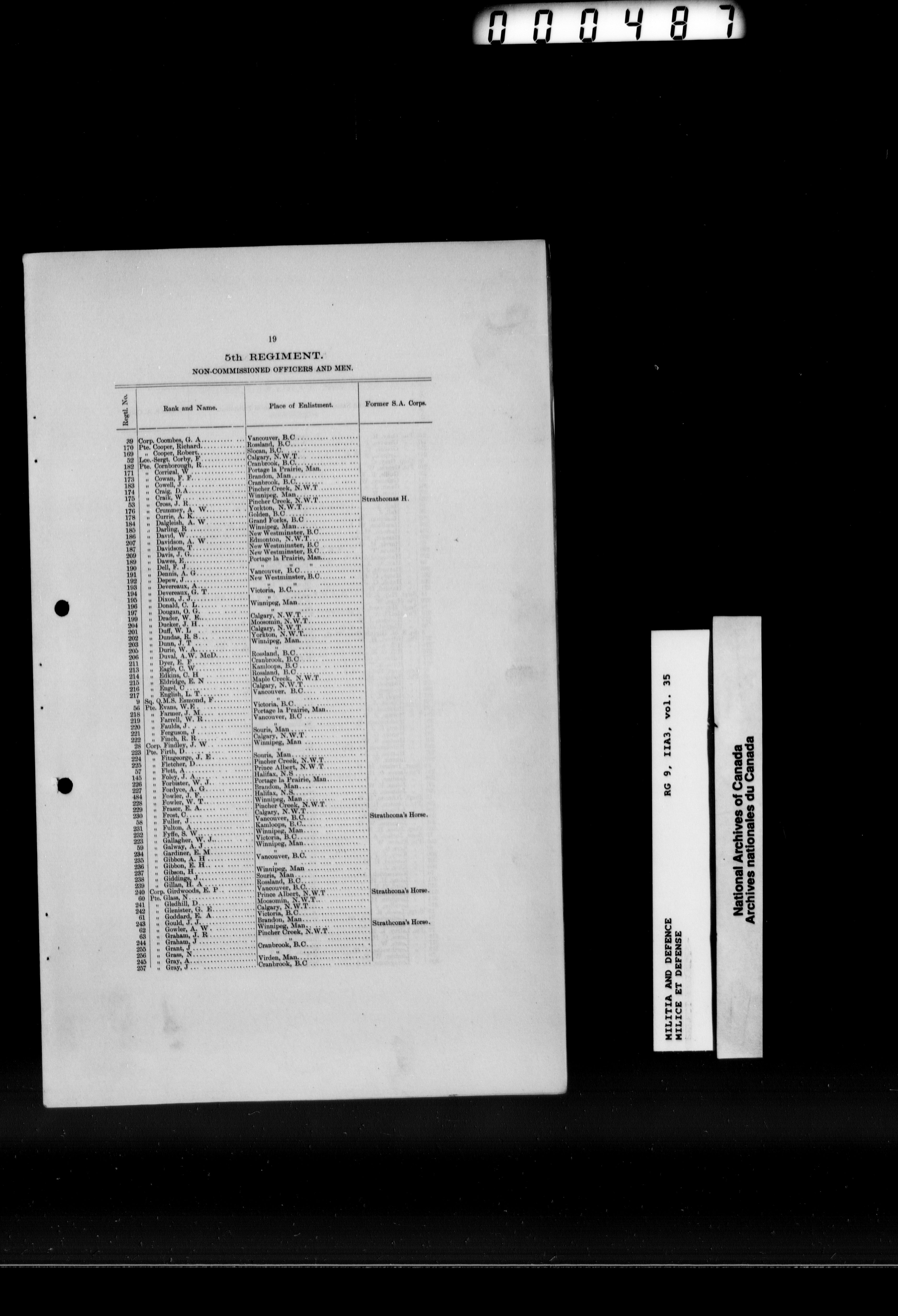 Department of Militia and Defence : Records relating to the Special Service Force sent to South Africa : T-10405
