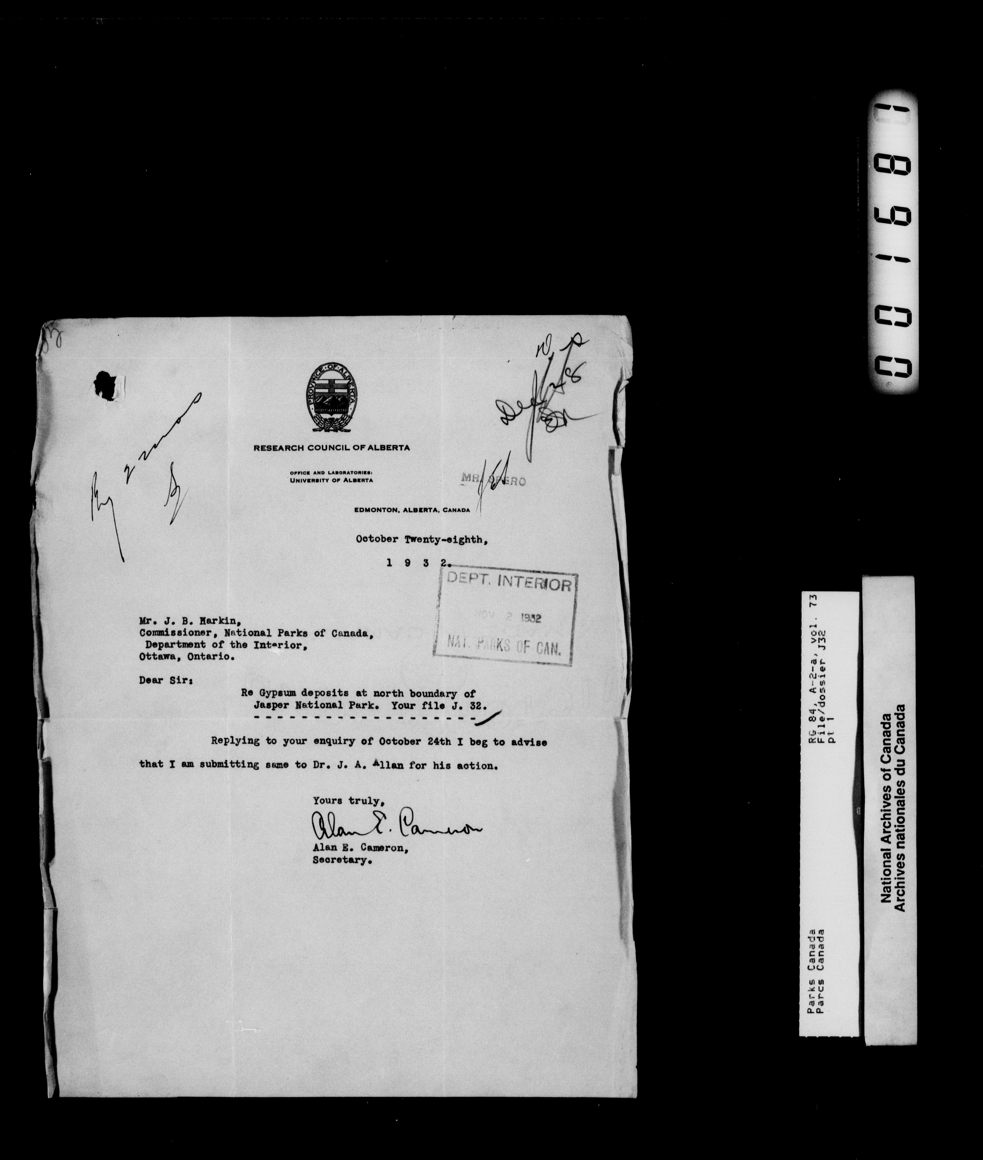 Department of Canadian Heritage, Canadian Parks Service : Park/subject classification system : T-10416