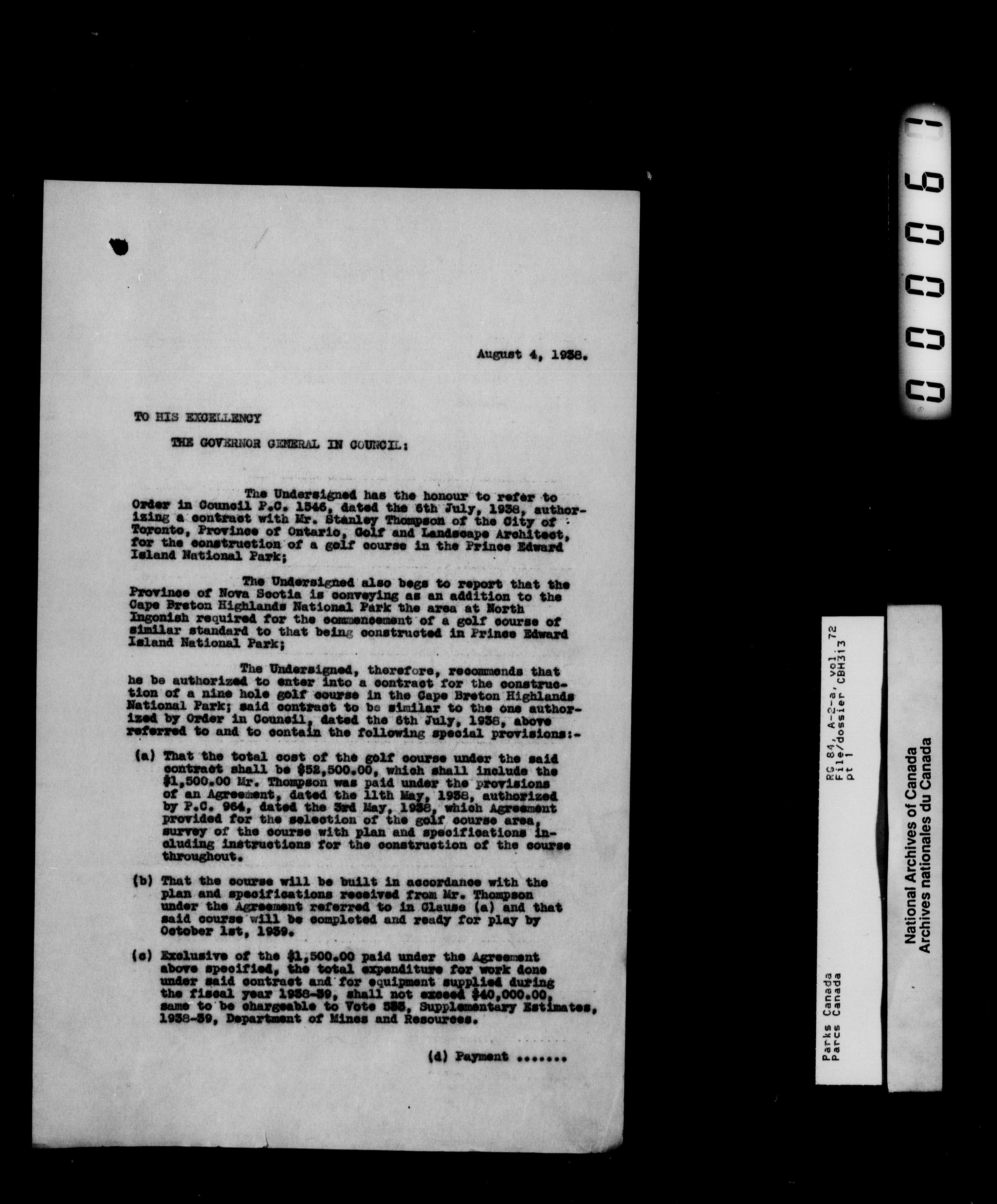 Department of Canadian Heritage, Canadian Parks Service : Park/subject classification system : T-10416