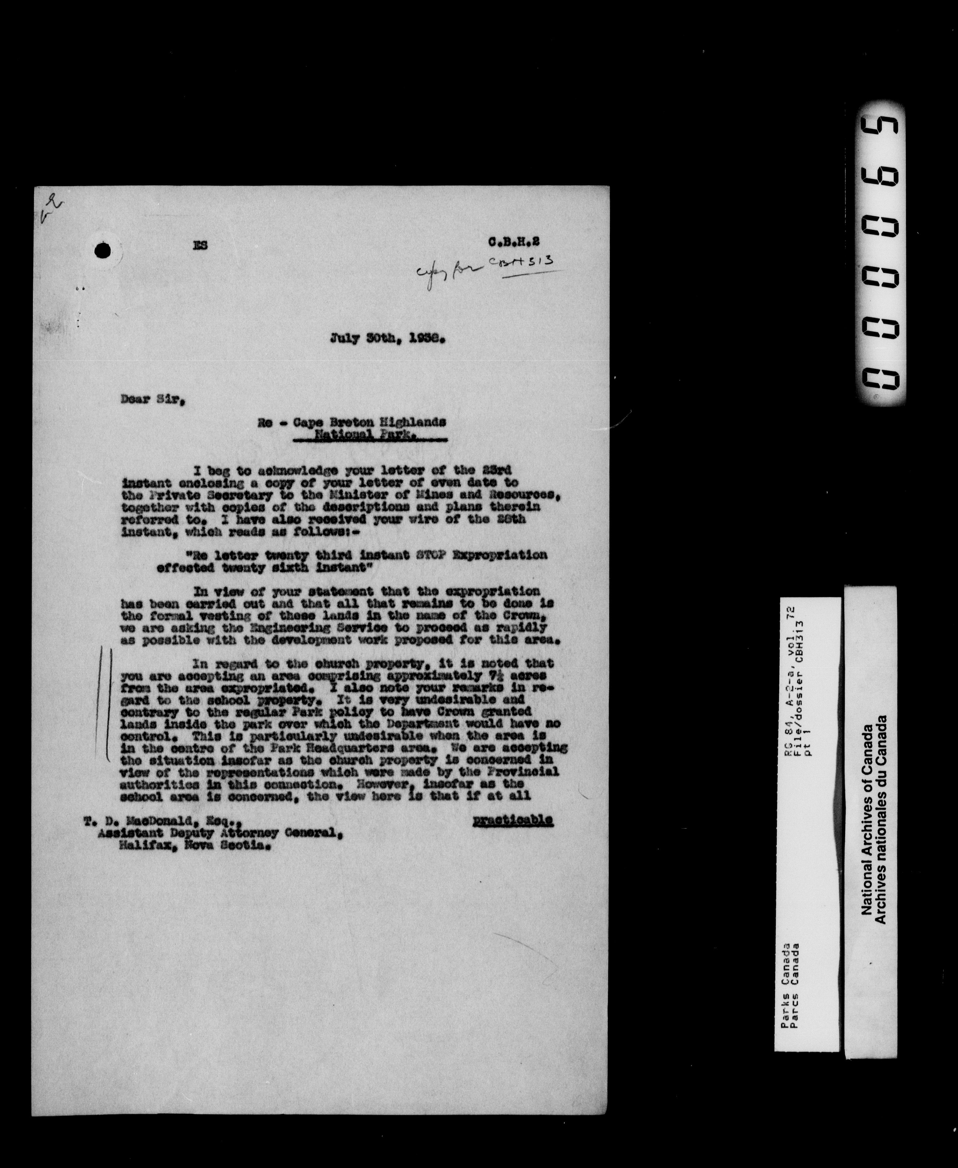 Department of Canadian Heritage, Canadian Parks Service : Park/subject classification system : T-10416