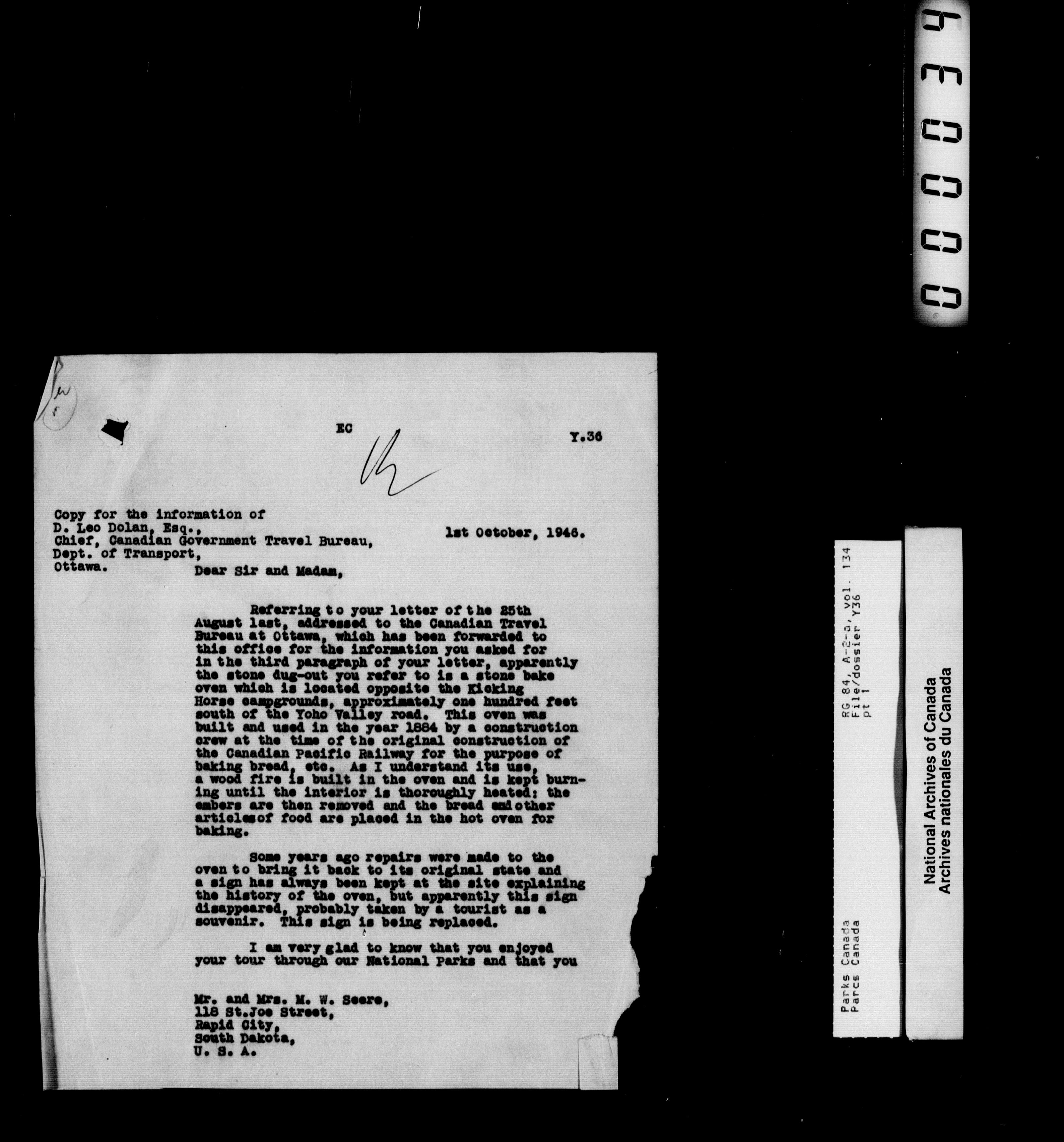 Department of Canadian Heritage, Canadian Parks Service : Park/subject classification system - 10420