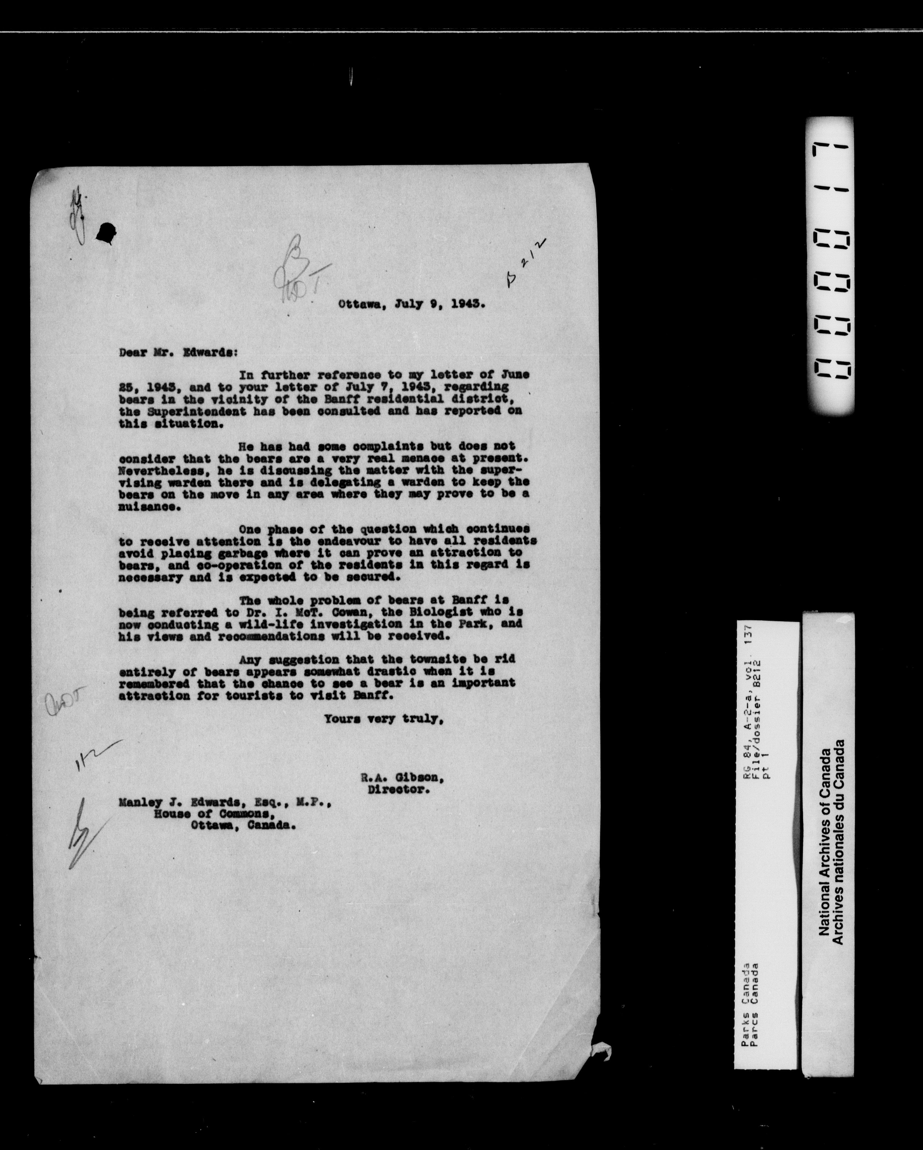 Department of Canadian Heritage, Canadian Parks Service : Park/subject classification system : T-10422