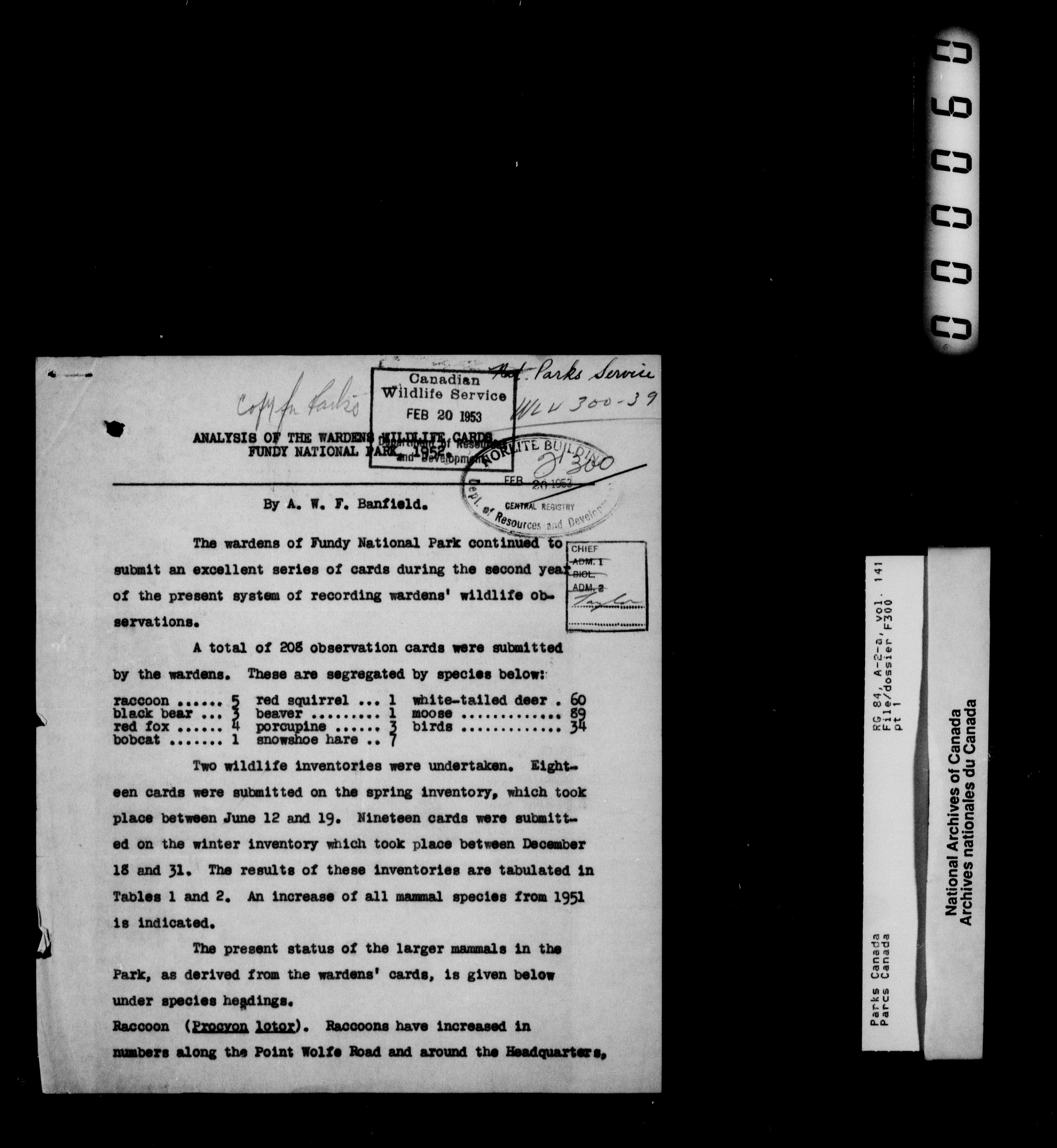 Department of Canadian Heritage, Canadian Parks Service : Park/subject classification system - 10426