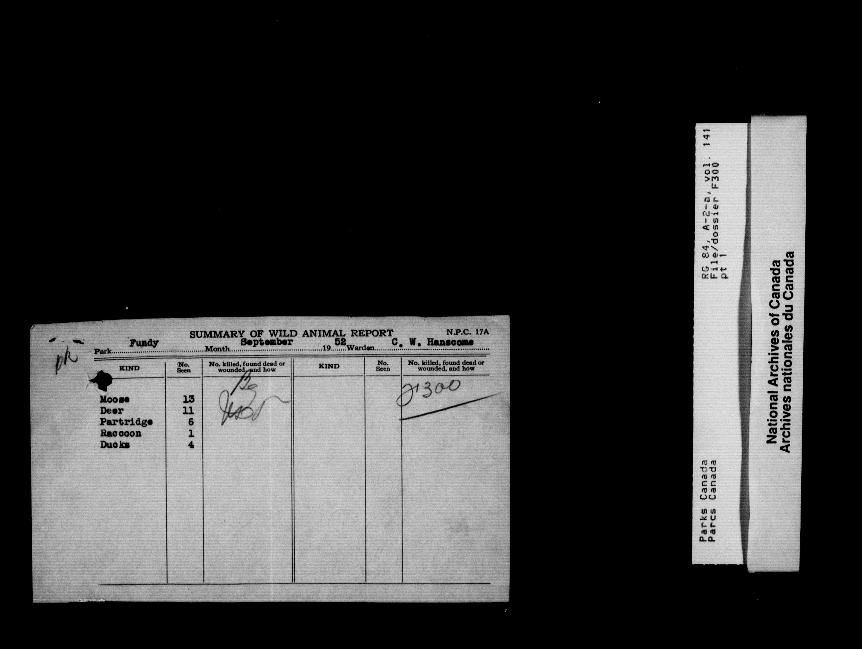 Department of Canadian Heritage, Canadian Parks Service : Park/subject classification system : T-10426
