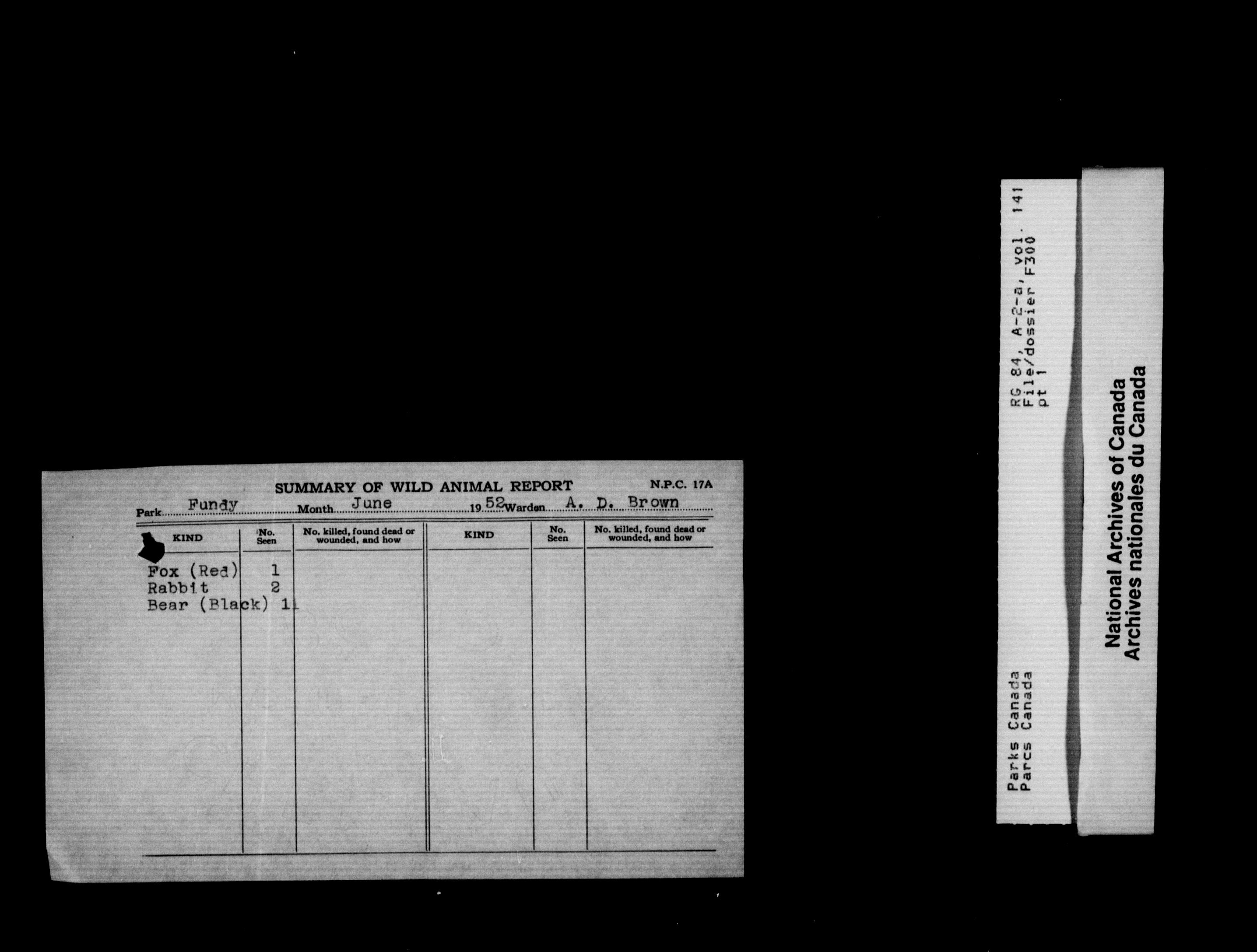 Department of Canadian Heritage, Canadian Parks Service : Park/subject classification system : T-10426