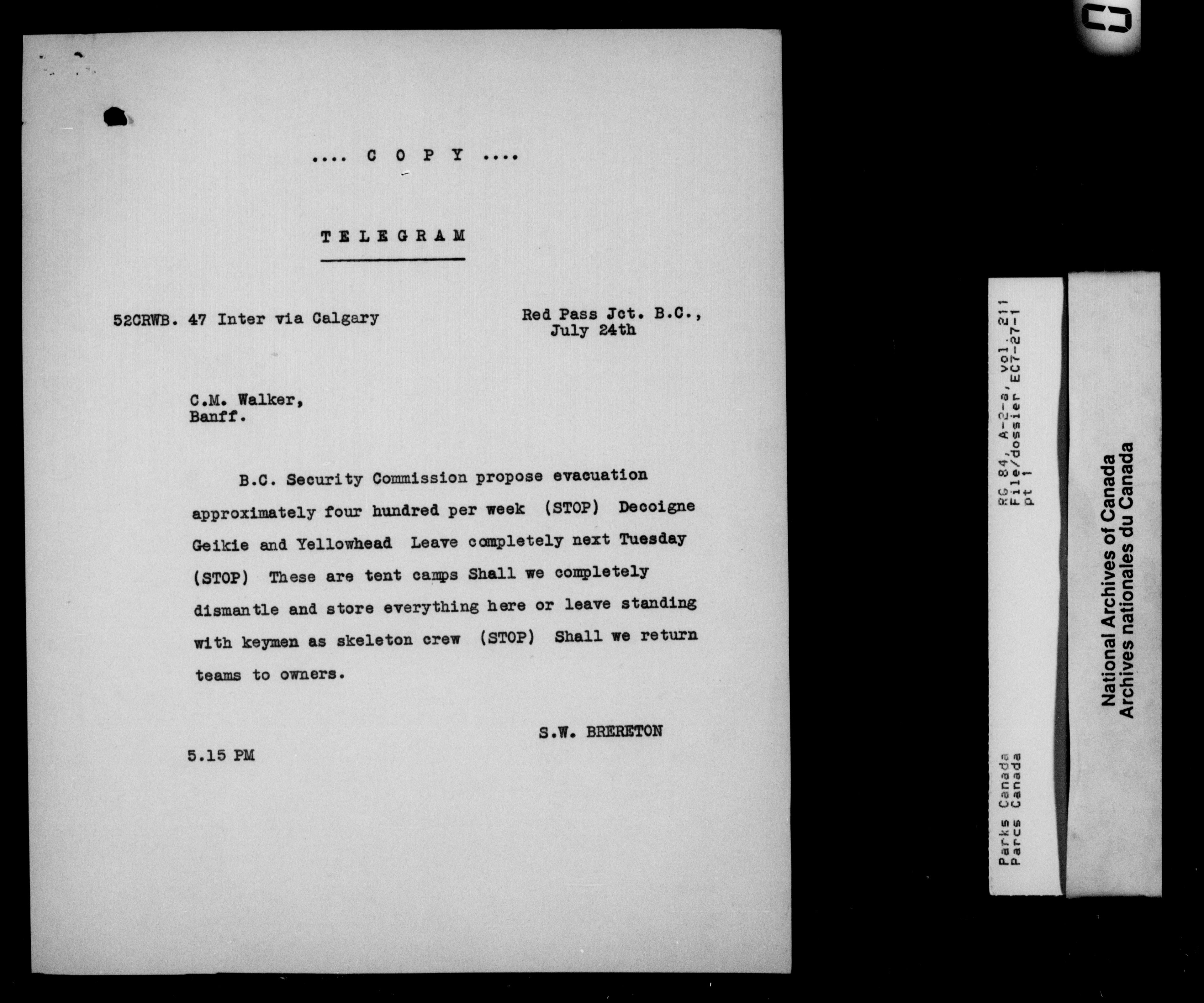 Department of Canadian Heritage, Canadian Parks Service : Park/subject classification system : T-10447