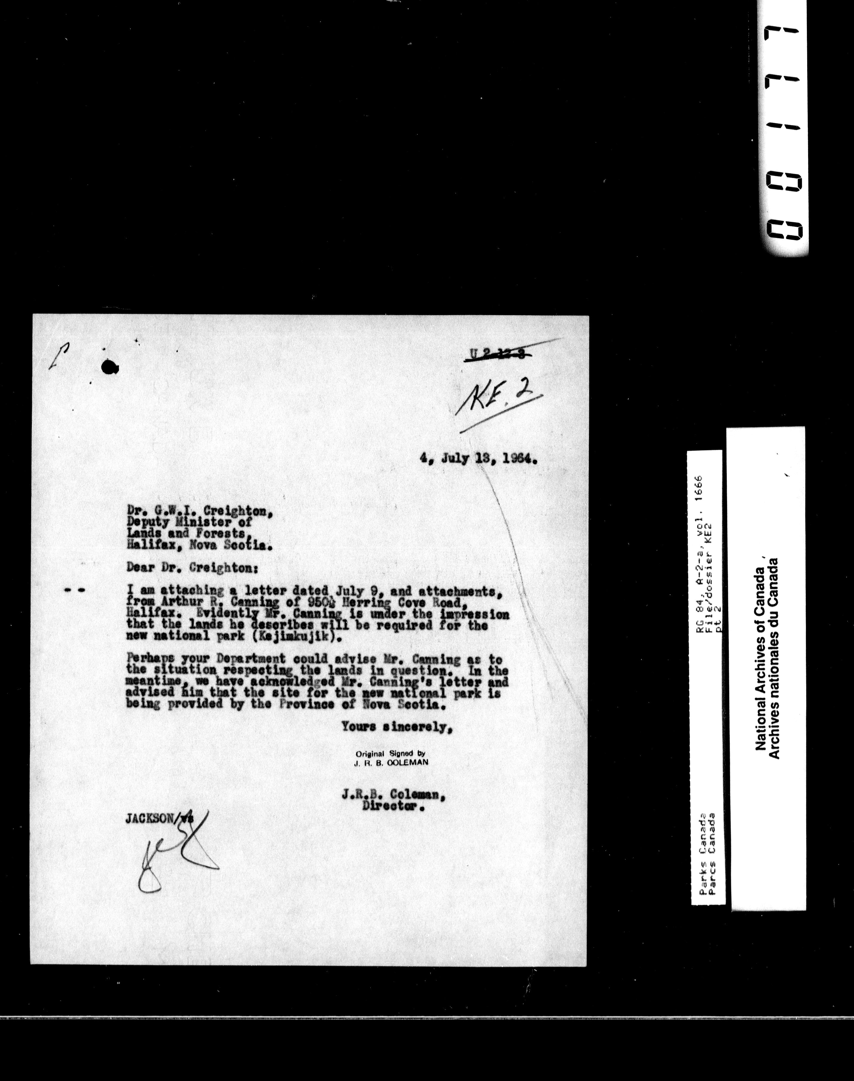 Department of Canadian Heritage, Canadian Parks Service : Park/subject classification system : T-10467