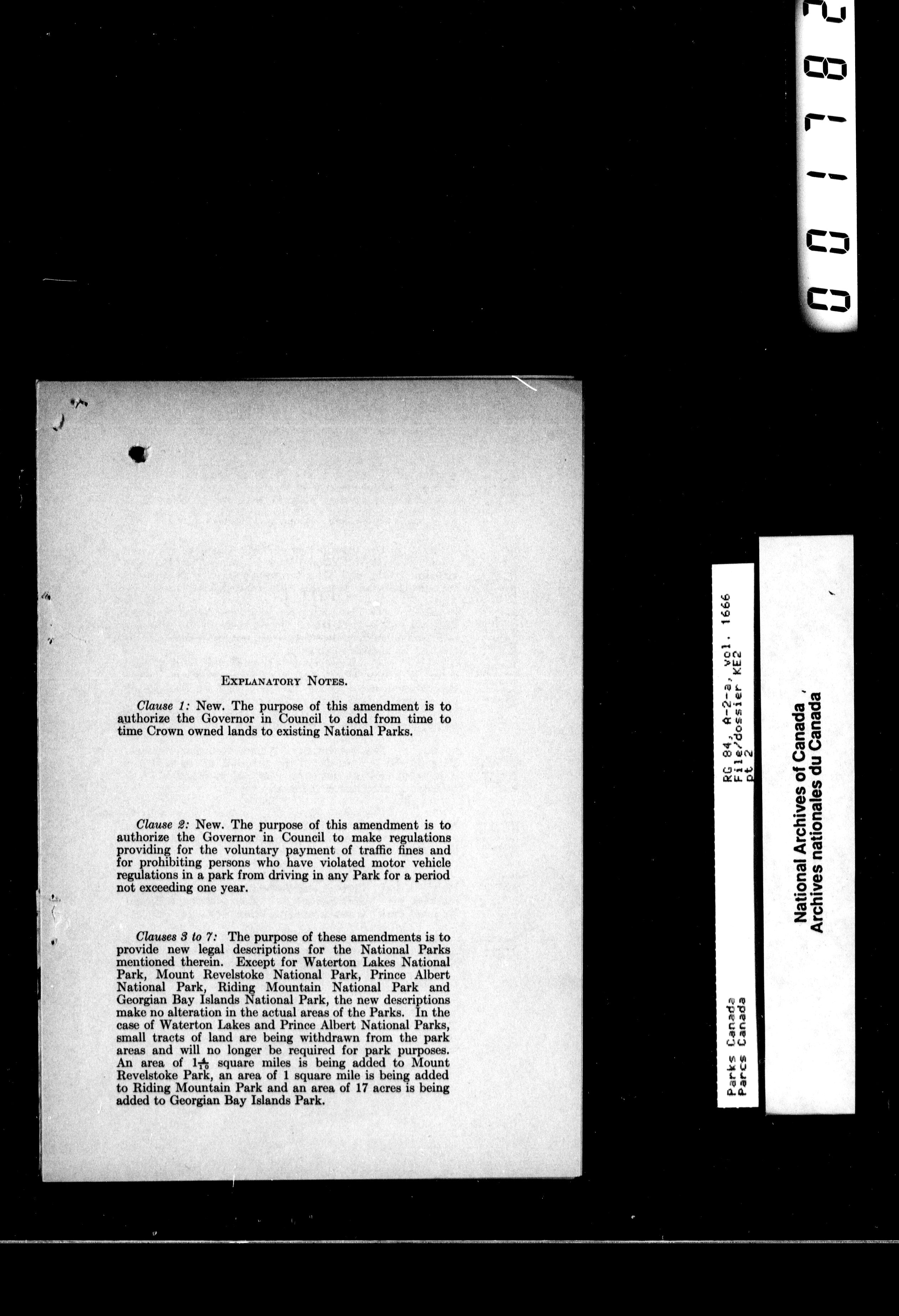 Department of Canadian Heritage, Canadian Parks Service : Park/subject classification system : T-10467