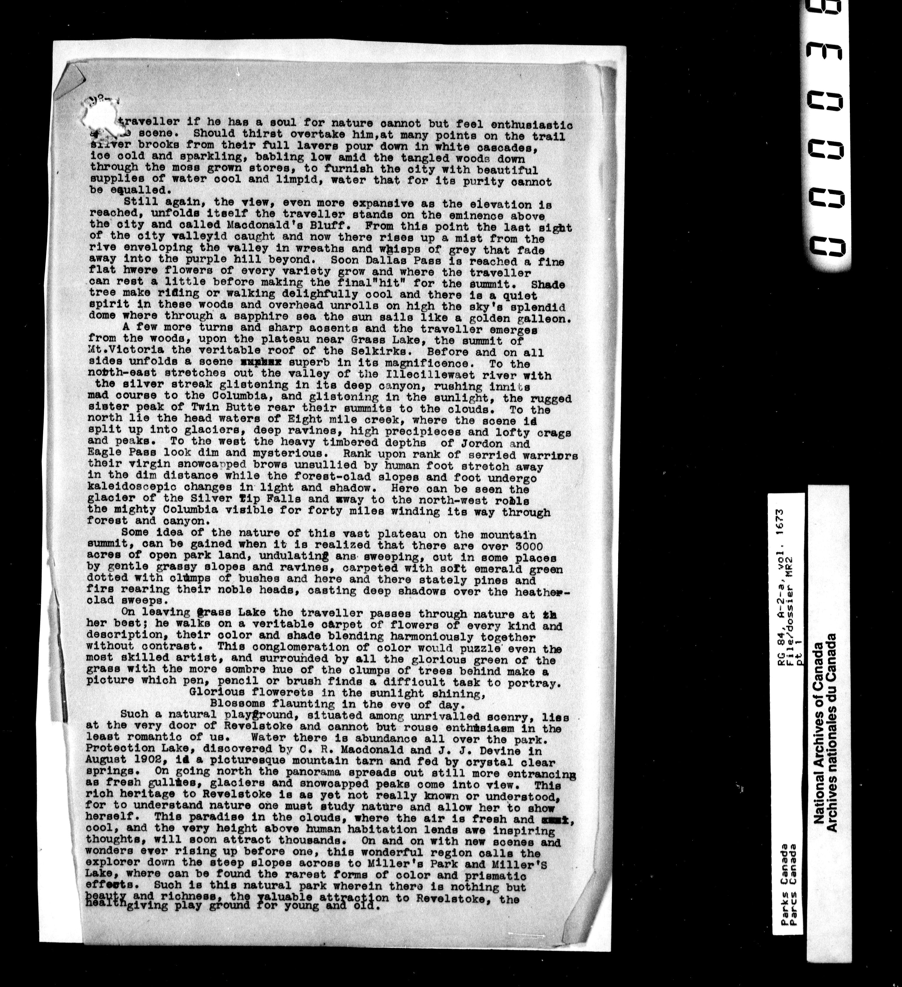 Department of Canadian Heritage, Canadian Parks Service : Park/subject classification systemParks Canada, Central Registry Files, Headquarters, 1897-1969 - 10473