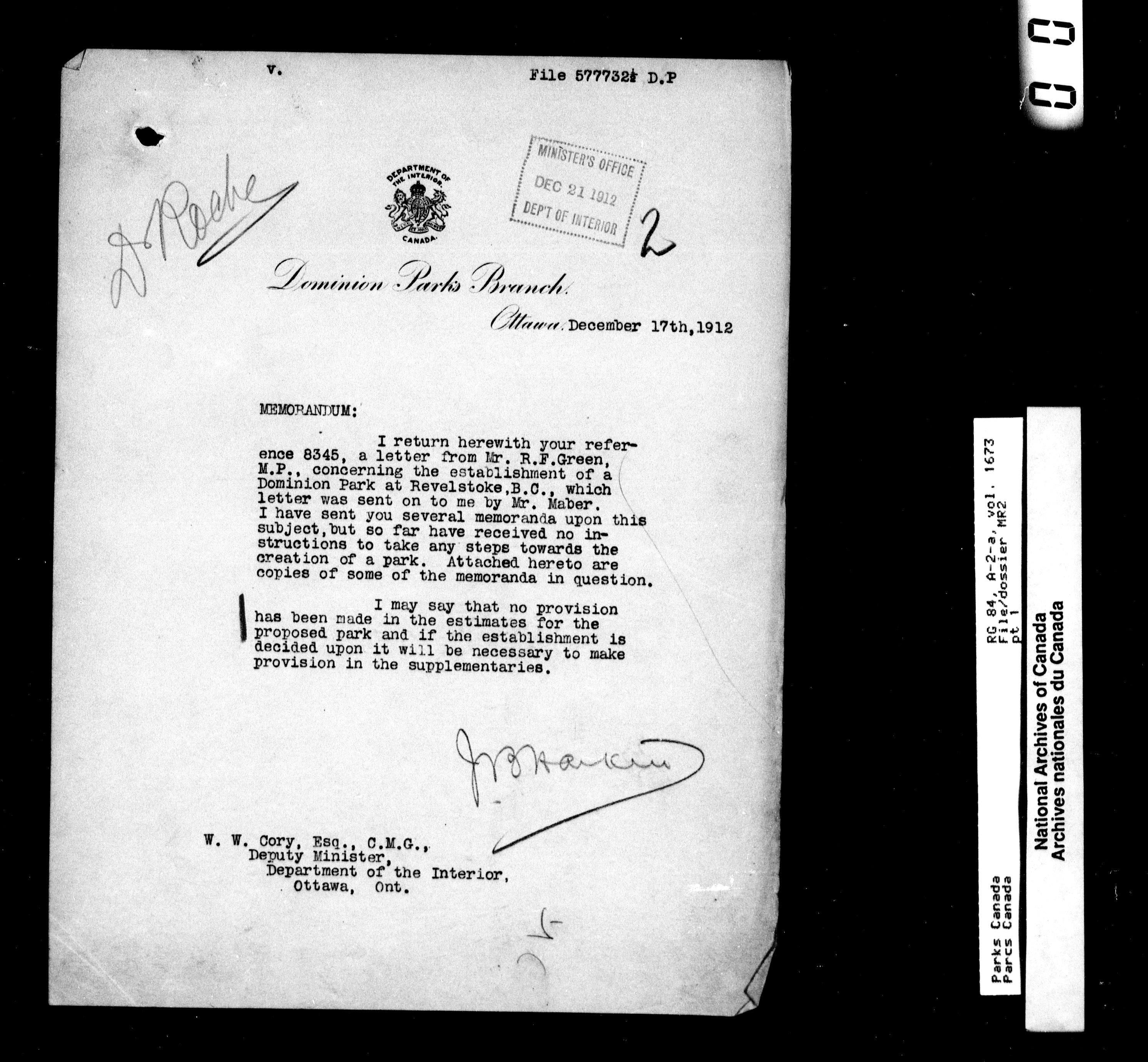 Department of Canadian Heritage, Canadian Parks Service : Park/subject classification systemParks Canada, Central Registry Files, Headquarters, 1897-1969 - 10473