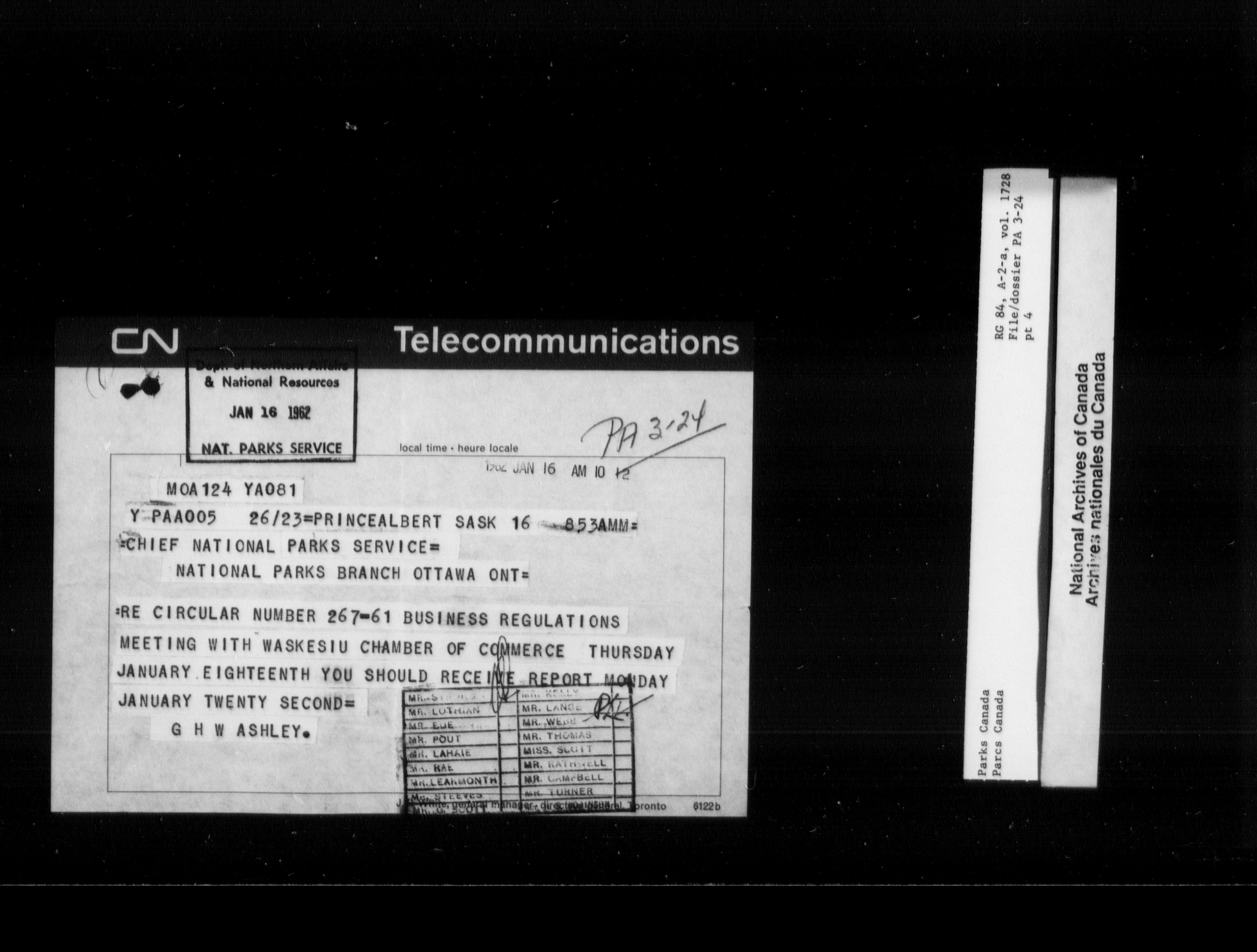Department of Canadian Heritage, Canadian Parks Service : Park/subject classification system : T-10494