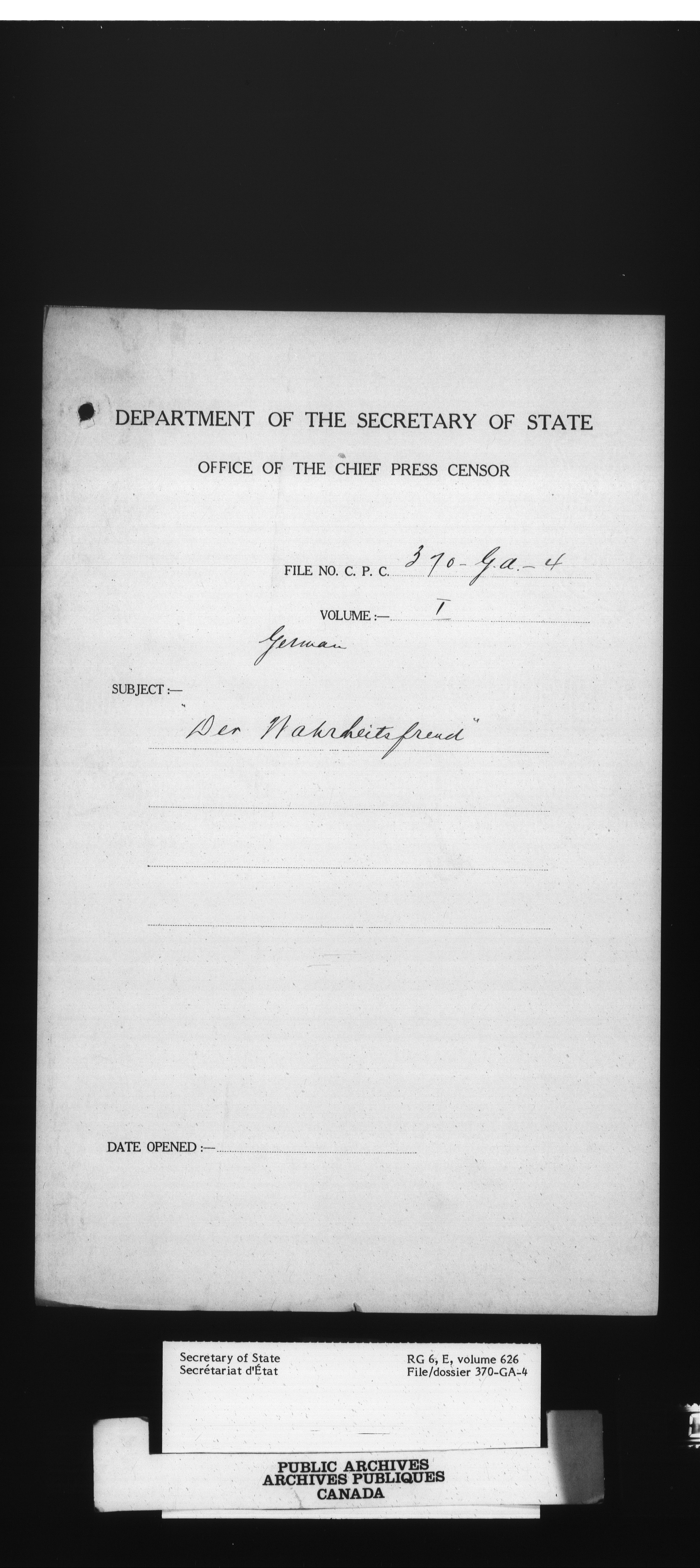 Secretary of State : Chief Press Censor, 1915-1920 - 105
