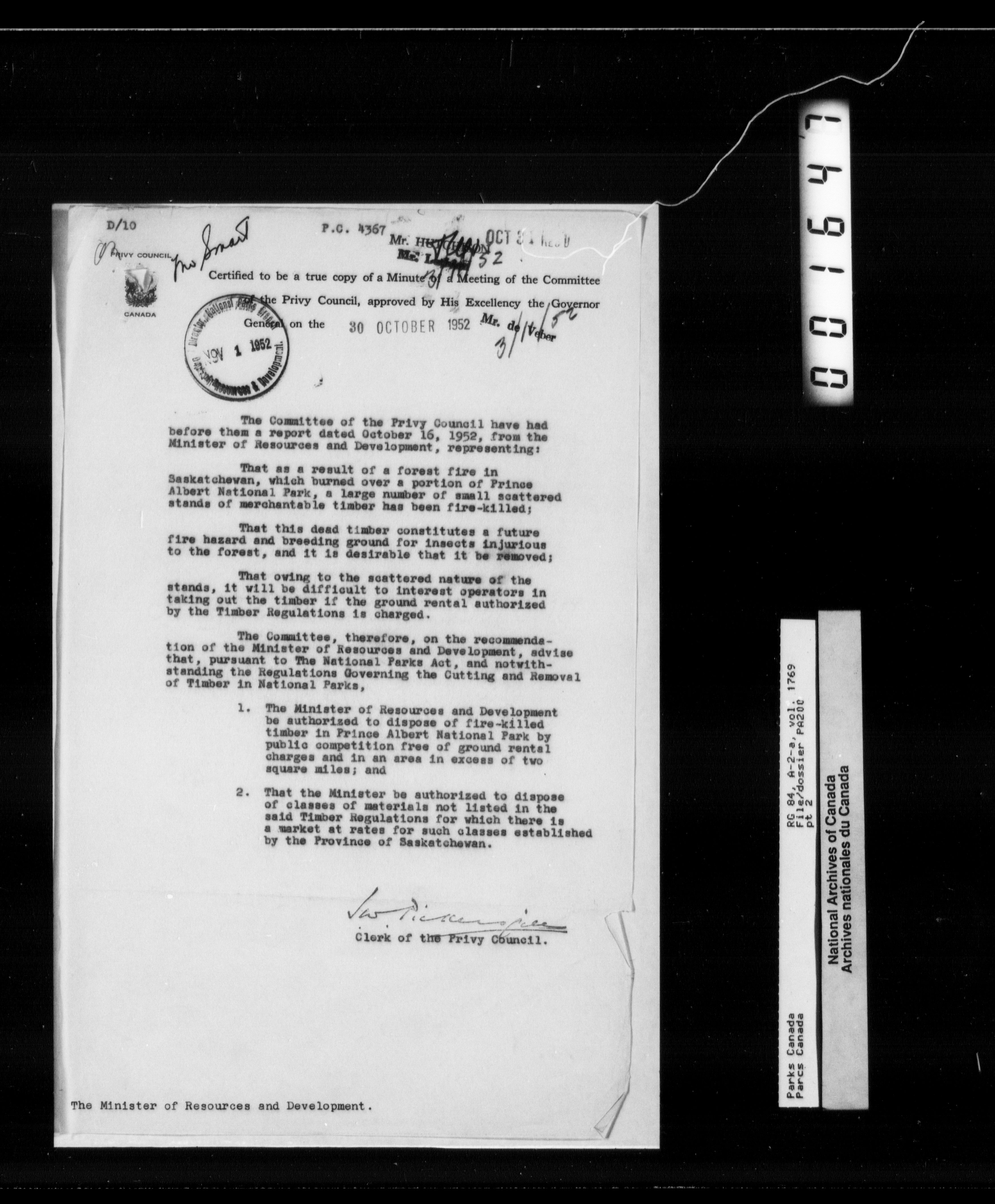 Department of Canadian Heritage, Canadian Parks Service : Park/subject classification system - 10500