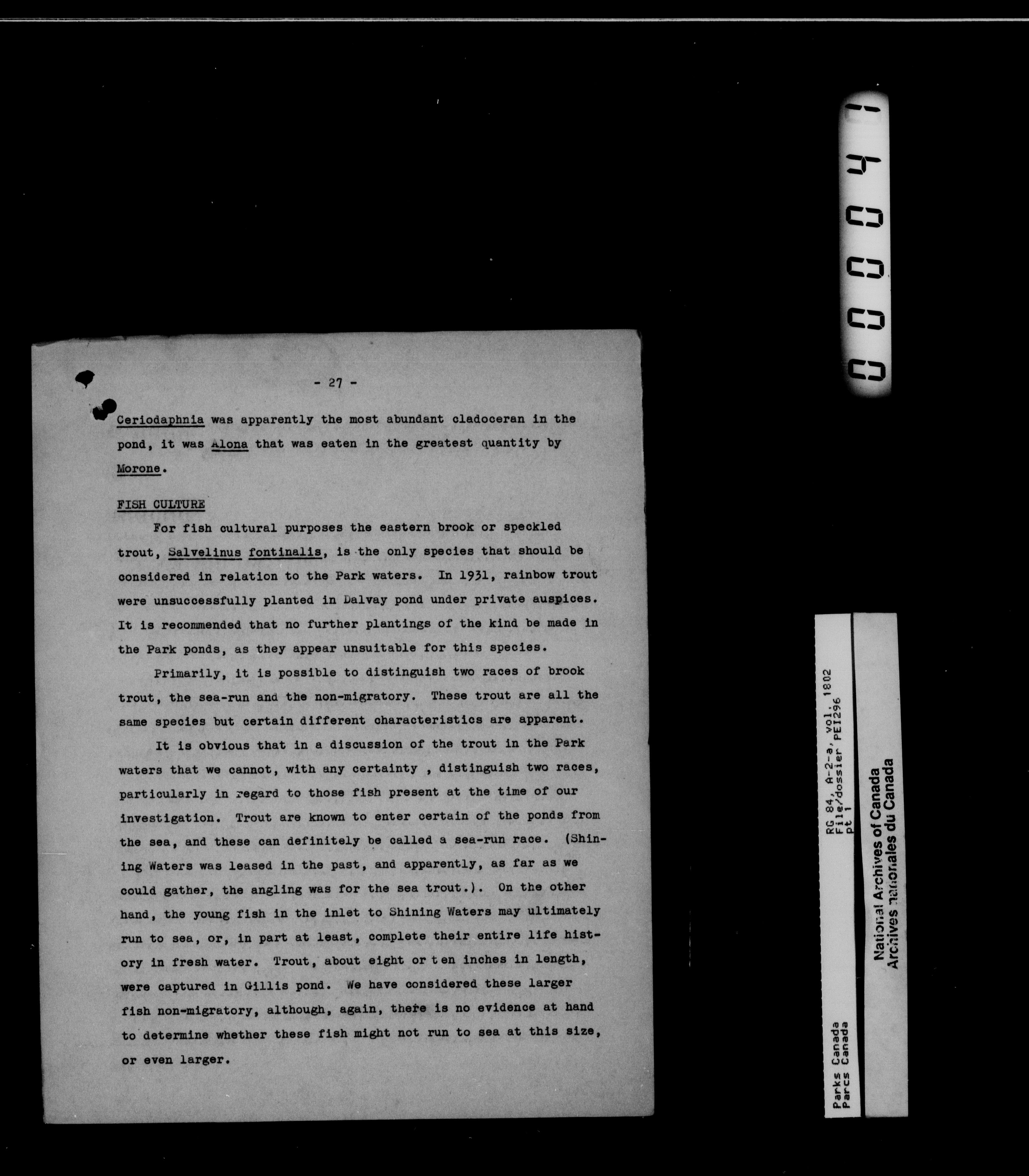 Department of Canadian Heritage, Canadian Parks Service : Park/subject classification system - 10516