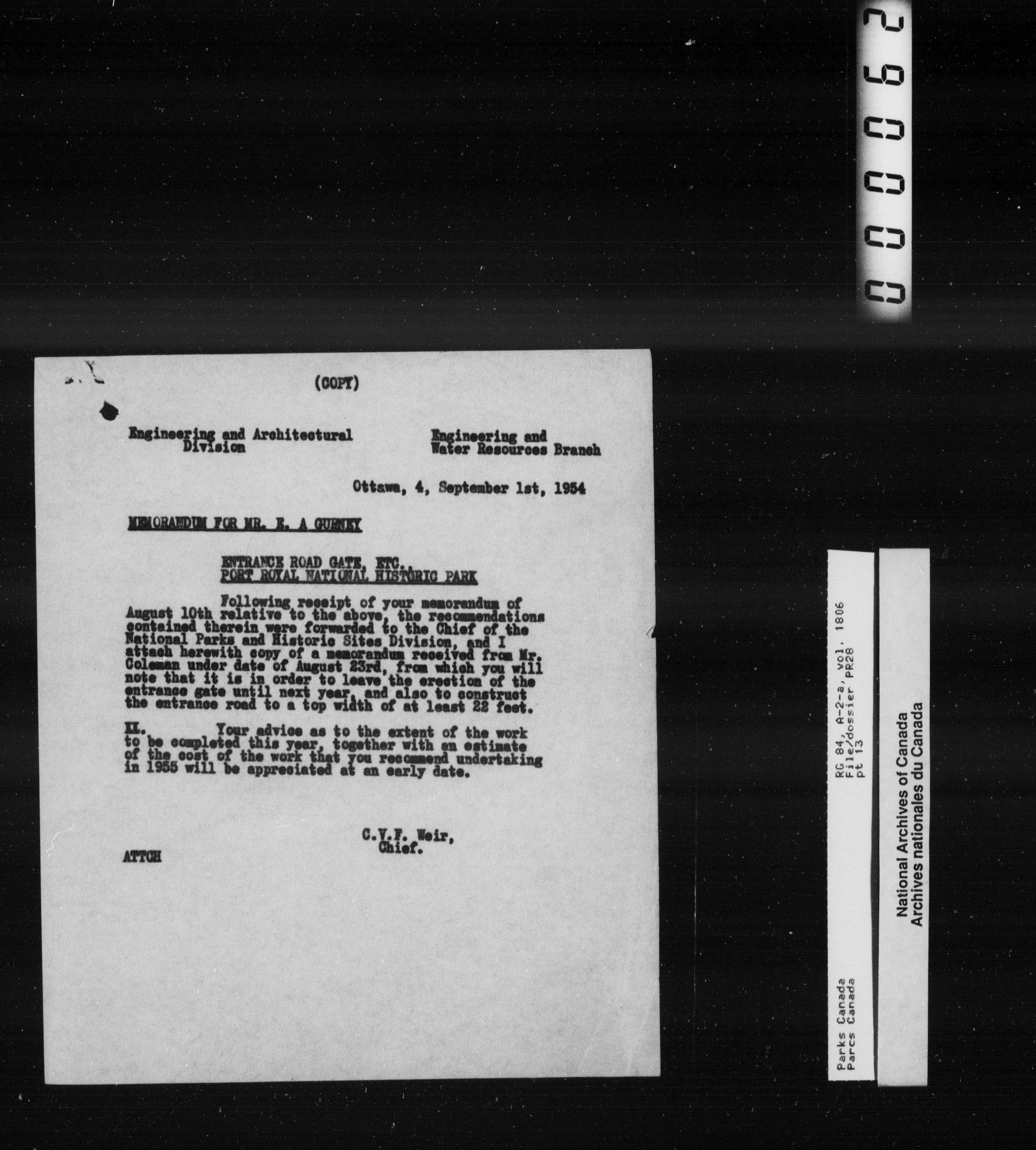 Department of Canadian Heritage, Canadian Parks Service : Park/subject classification system - 10519