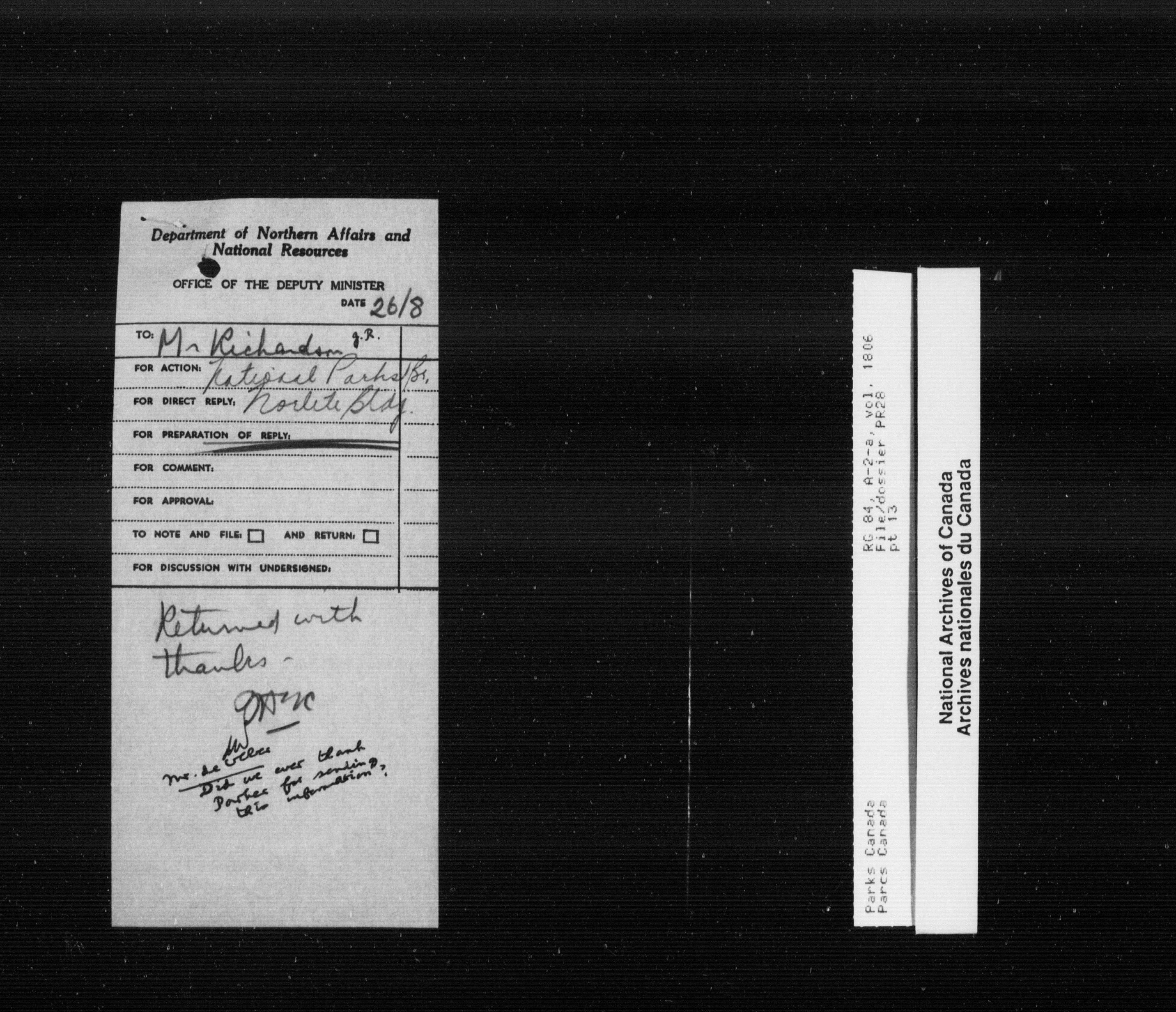 Department of Canadian Heritage, Canadian Parks Service : Park/subject classification system : T-10519