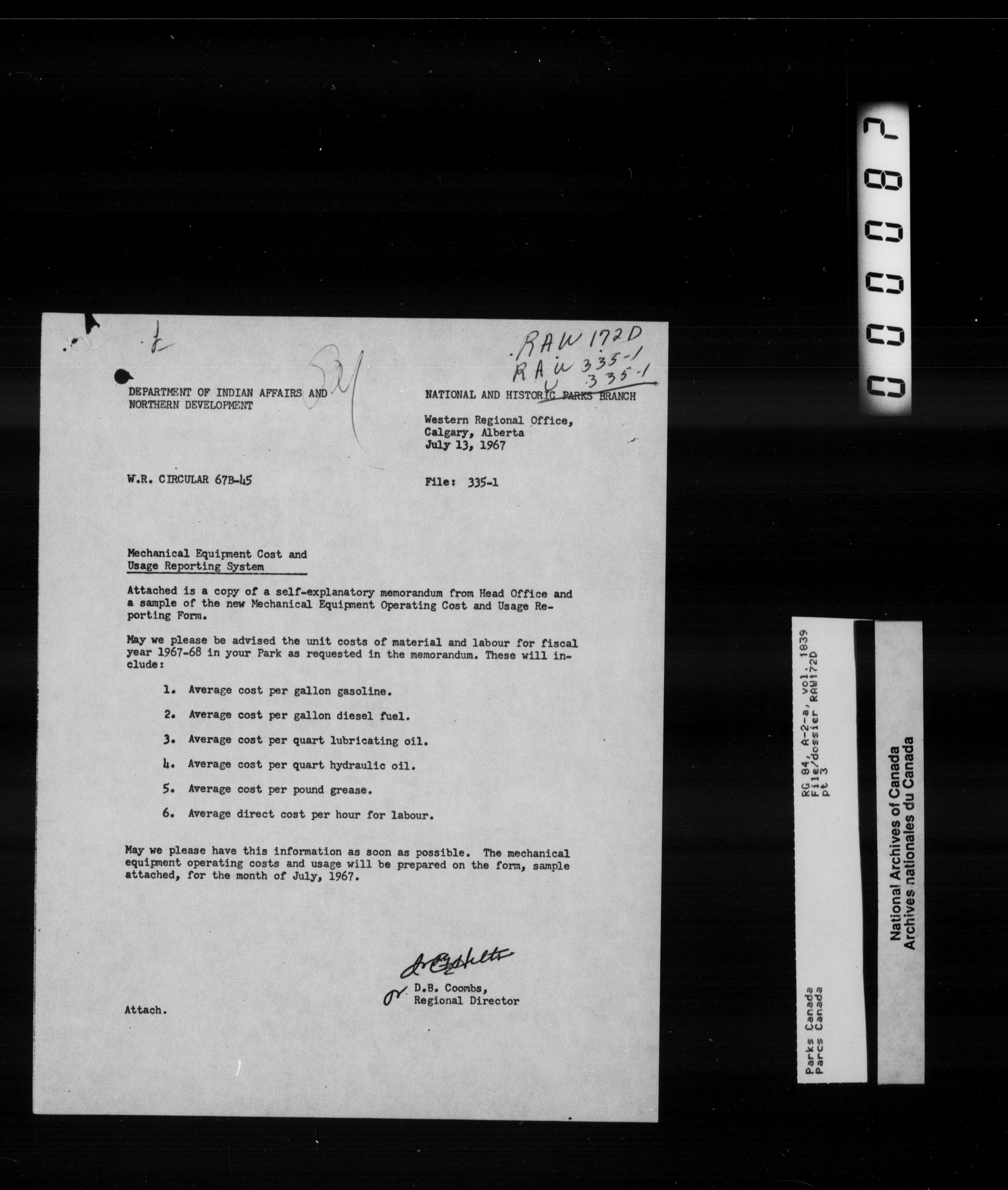 Department of Canadian Heritage, Canadian Parks Service : Park/subject classification system - 10527