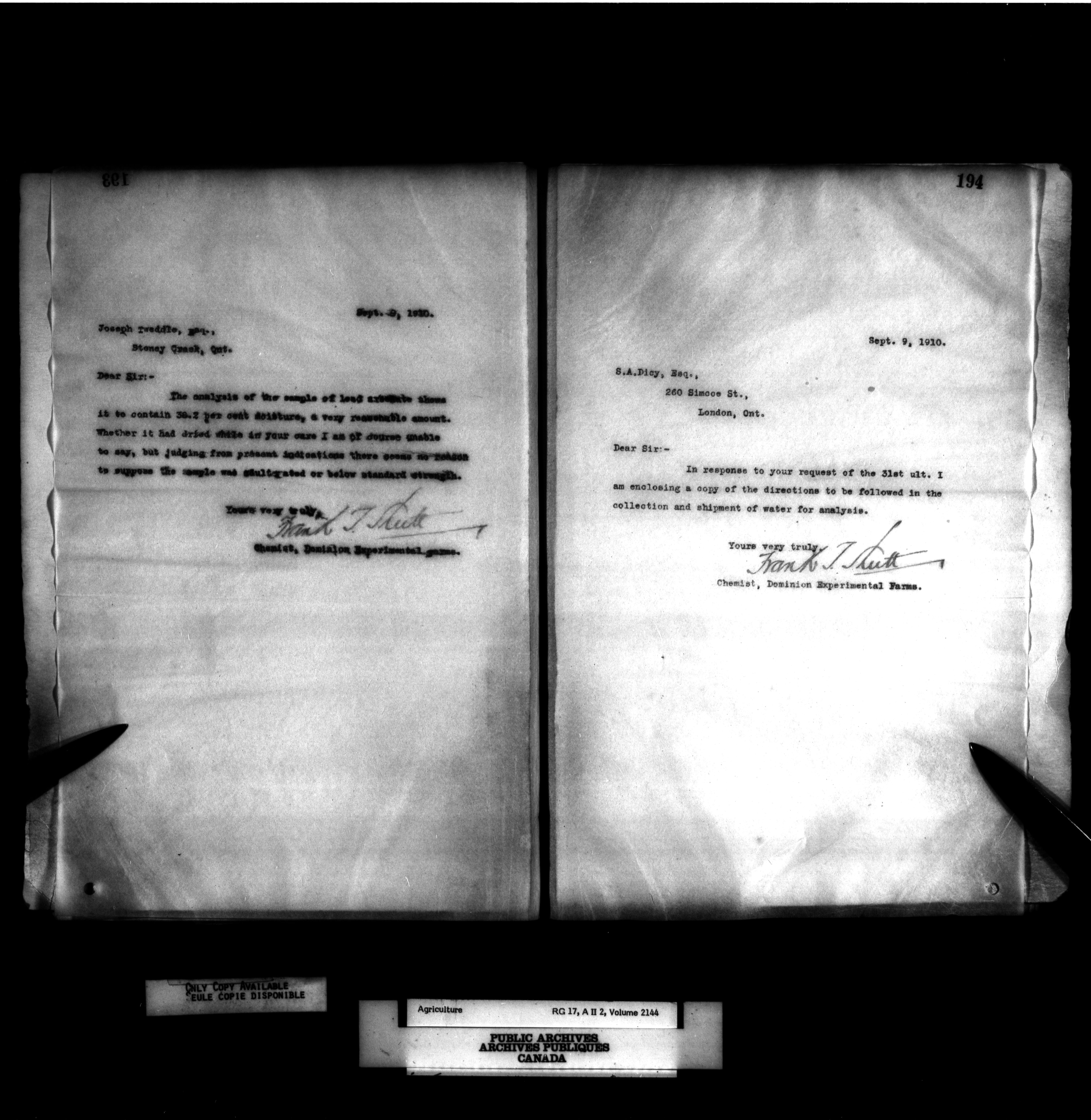 Department of Agriculture : Dominion Chemist, letterbooks - 1068