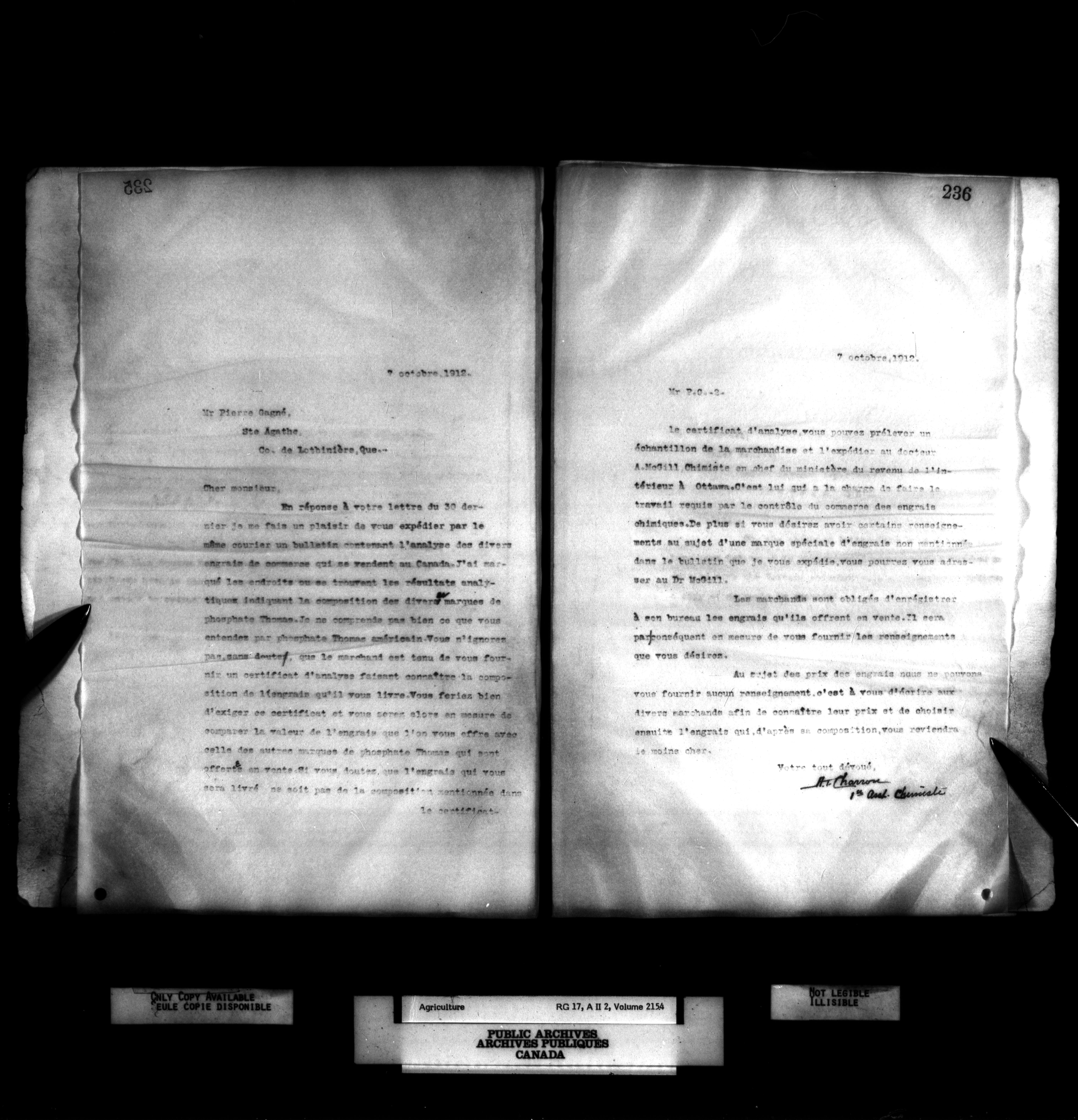 Department of Agriculture : Dominion Chemist, letterbooks - 1072