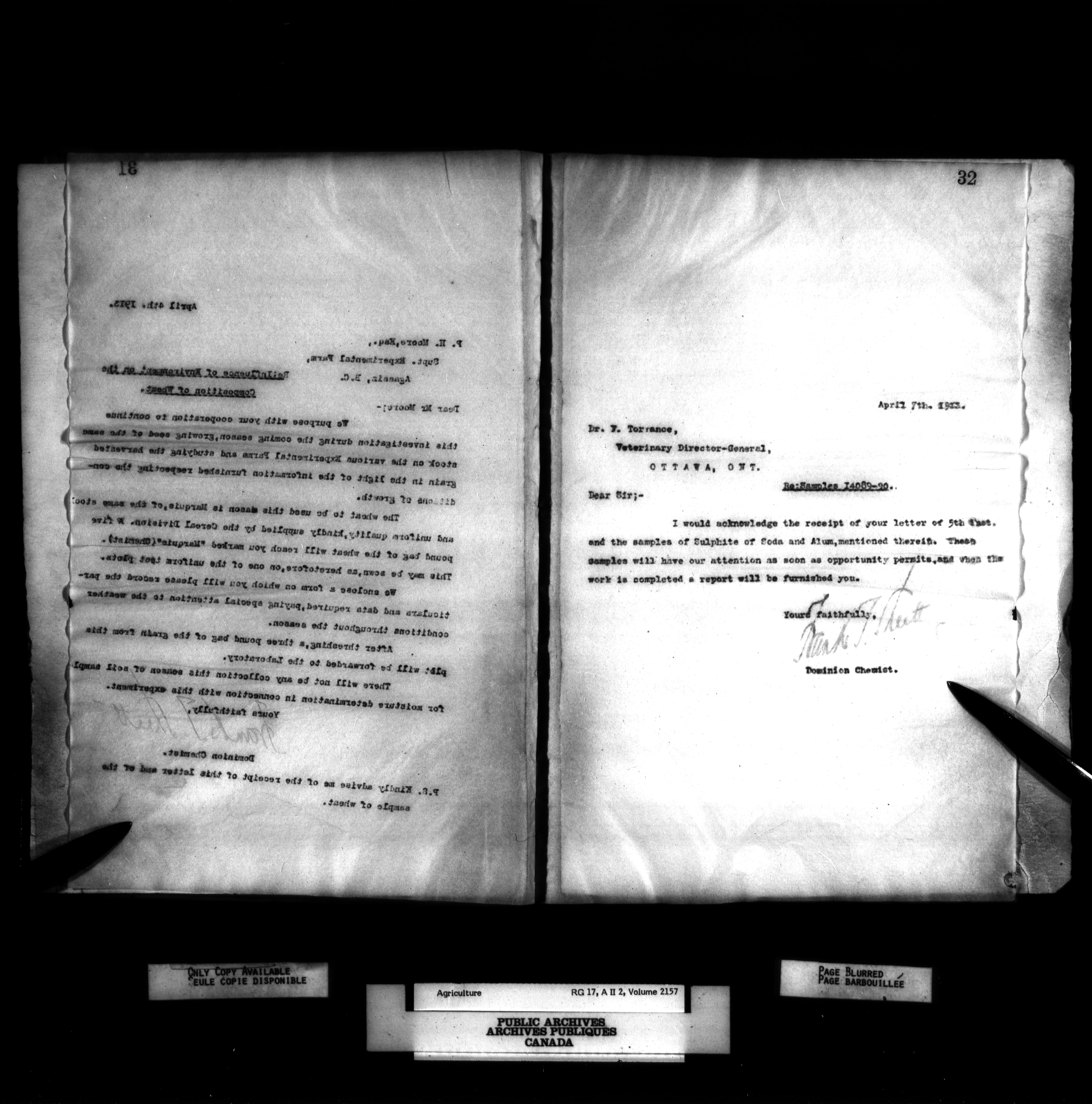 Department of Agriculture, Dominion Chemist : Letterbooks, 1889 - 1933 : T-1073