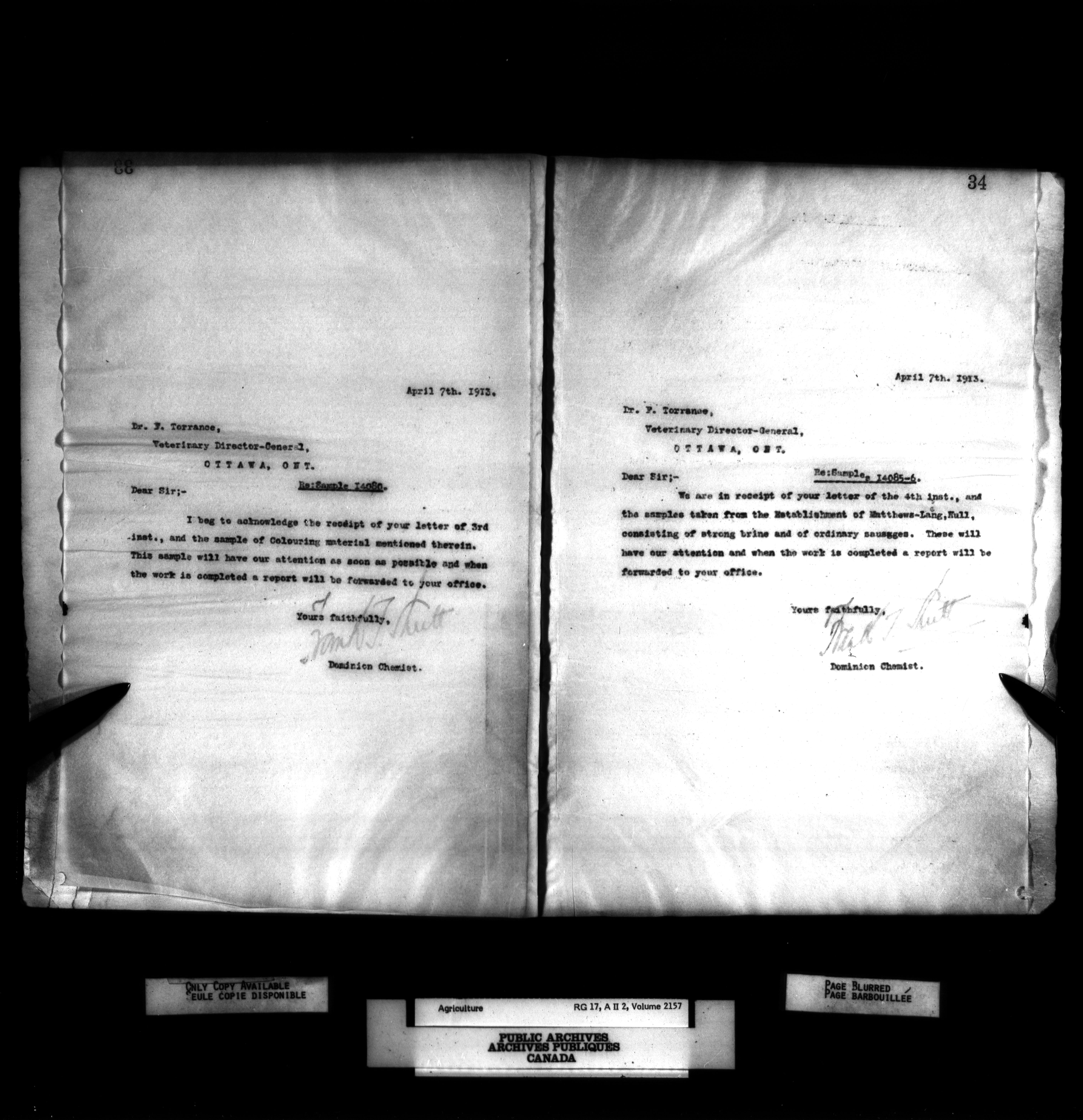 Department of Agriculture, Dominion Chemist : Letterbooks, 1889 - 1933 : T-1073