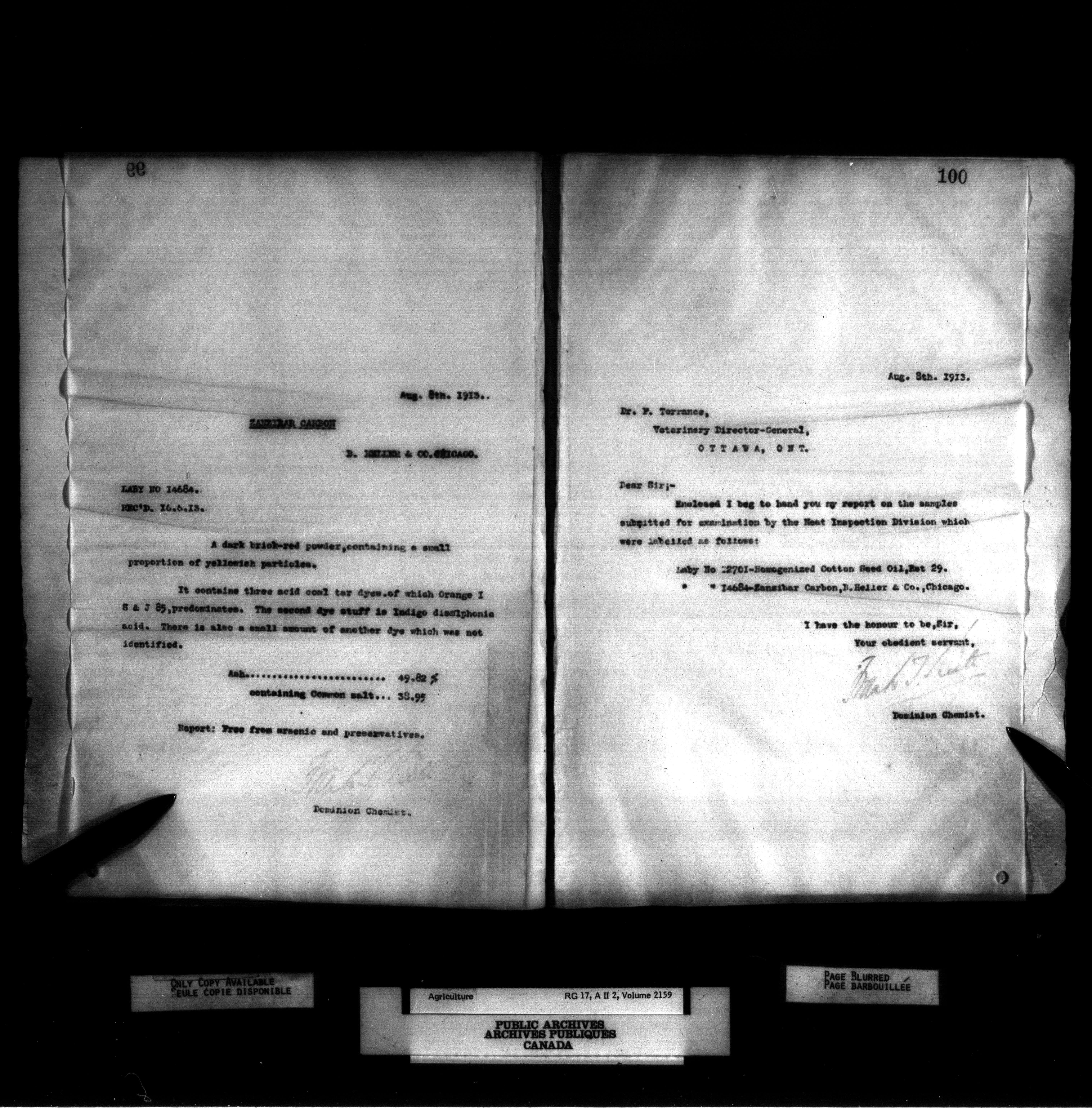 Department of Agriculture, Dominion Chemist : Letterbooks, 1889 - 1933 : T-1073