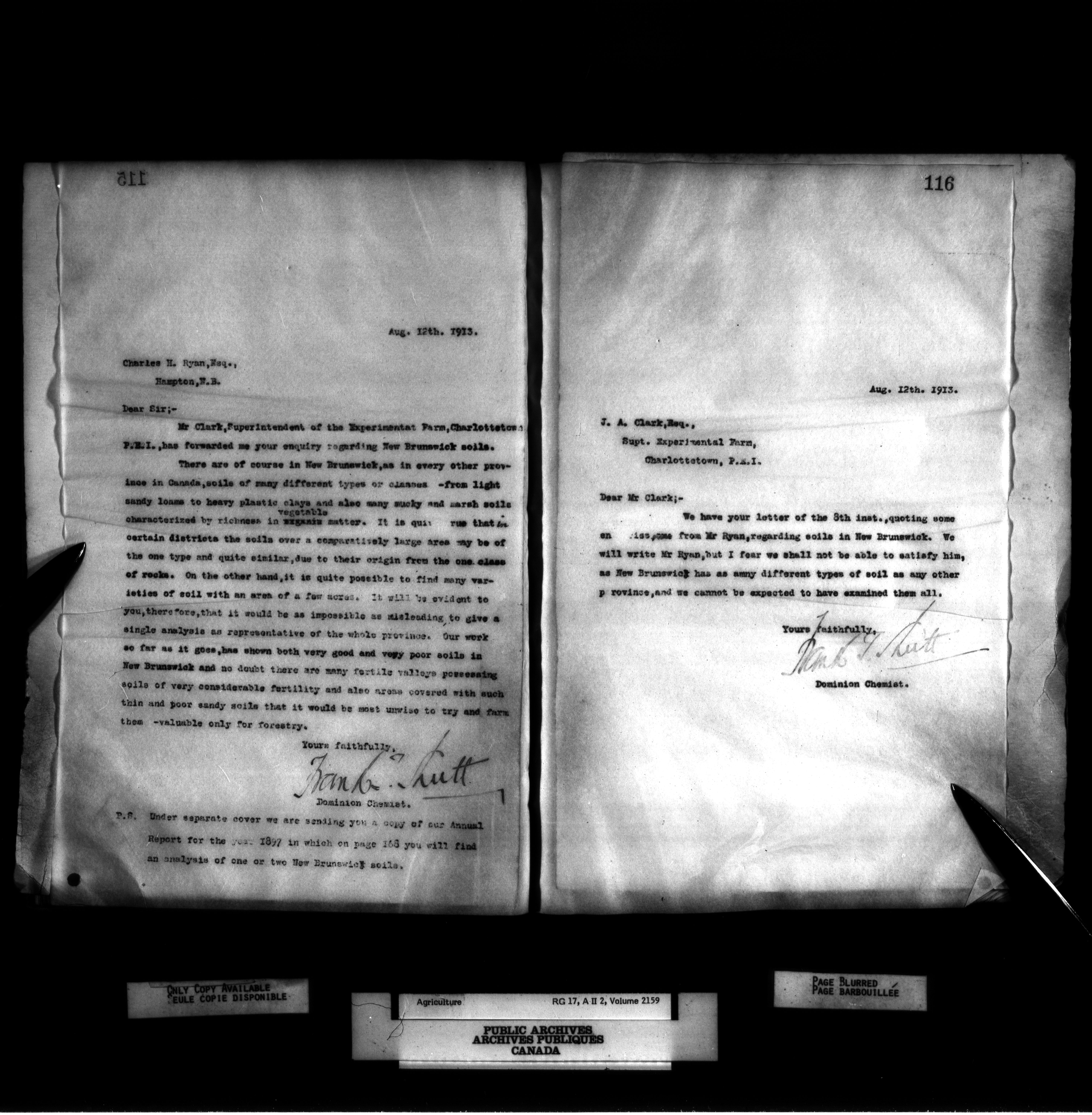 Department of Agriculture, Dominion Chemist : Letterbooks, 1889 - 1933 : T-1073