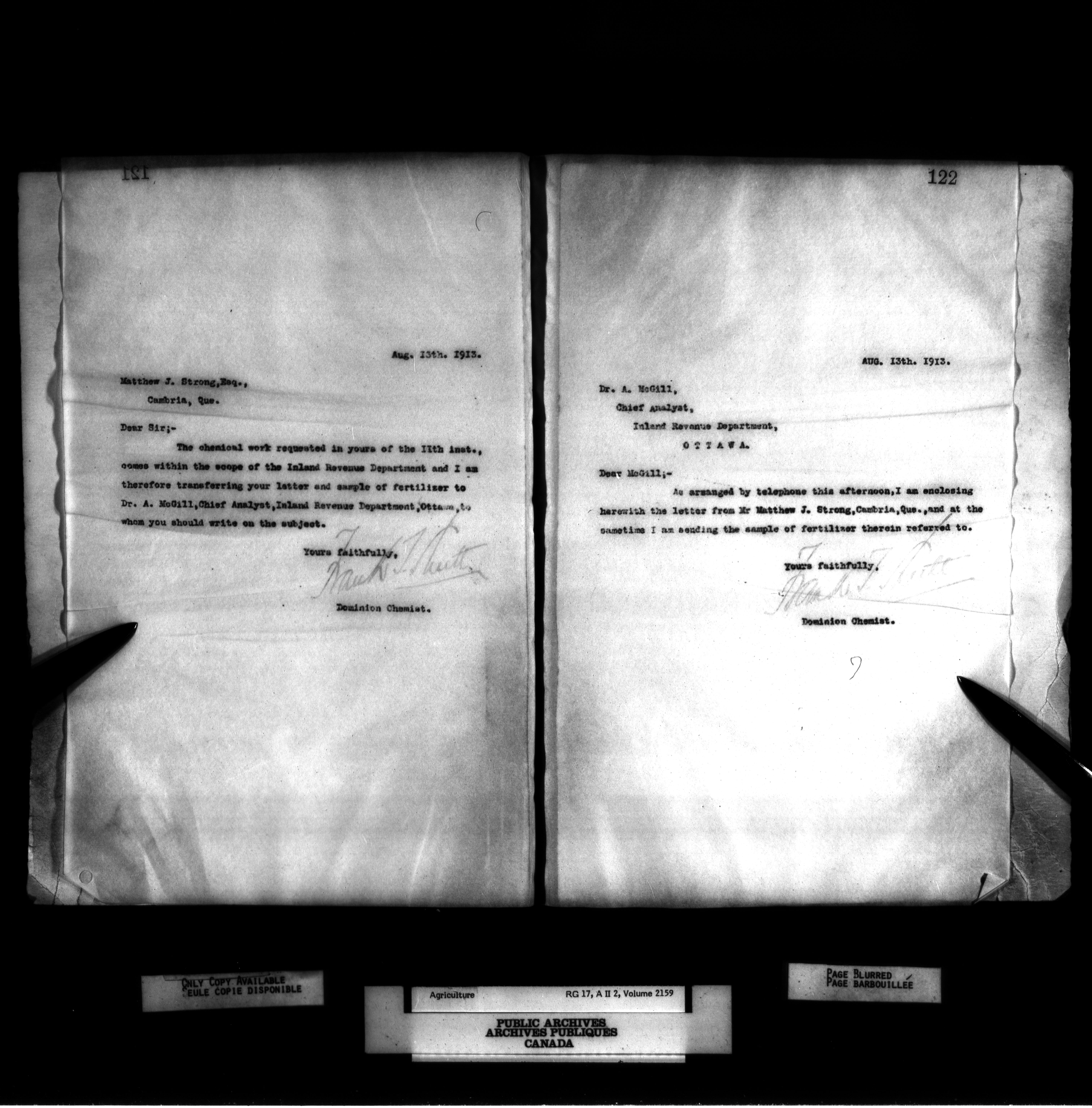 Department of Agriculture, Dominion Chemist : Letterbooks, 1889 - 1933 : T-1073