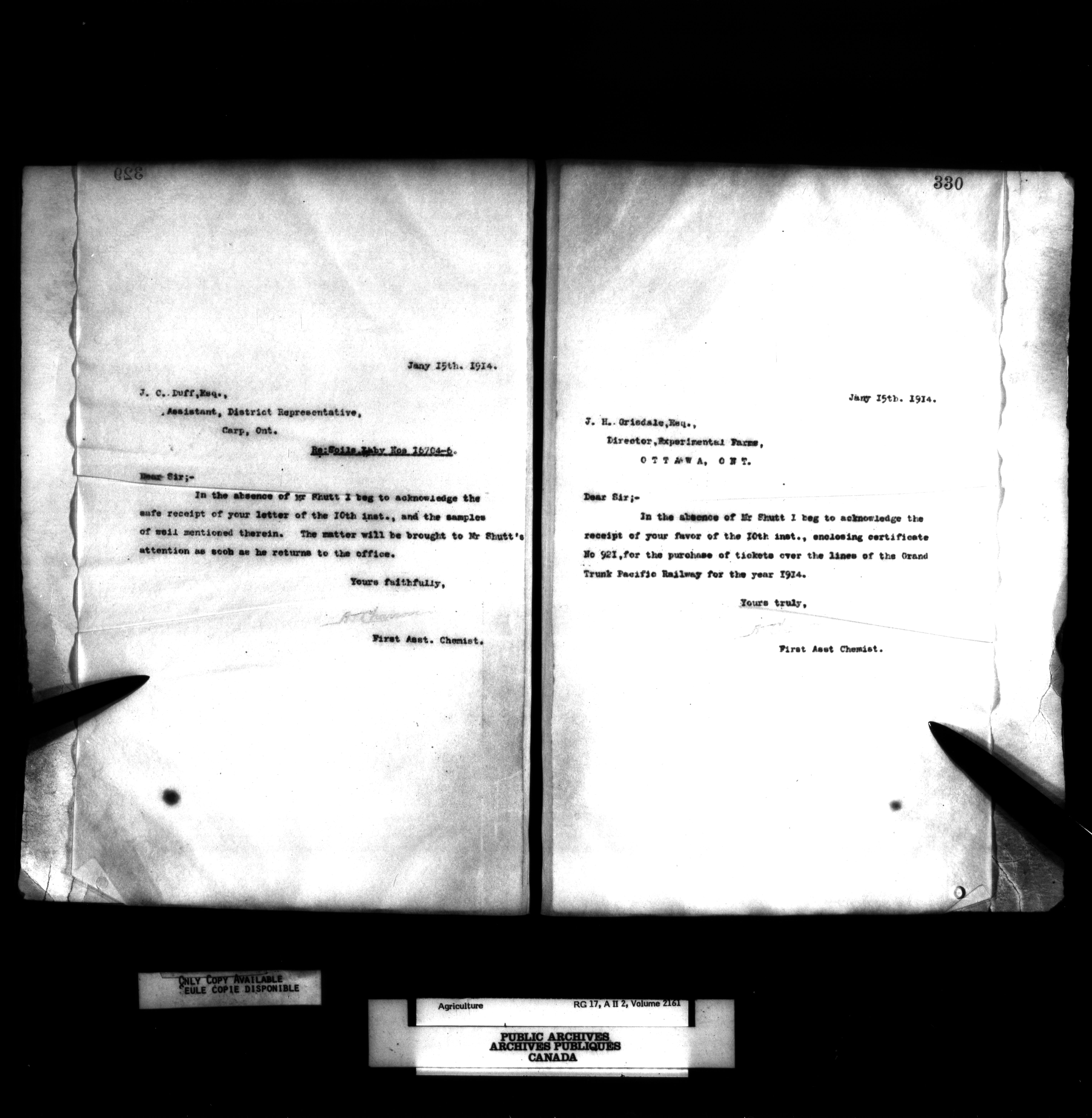 Department of Agriculture, Dominion Chemist : Letterbooks, 1889 - 1933 : T-1075