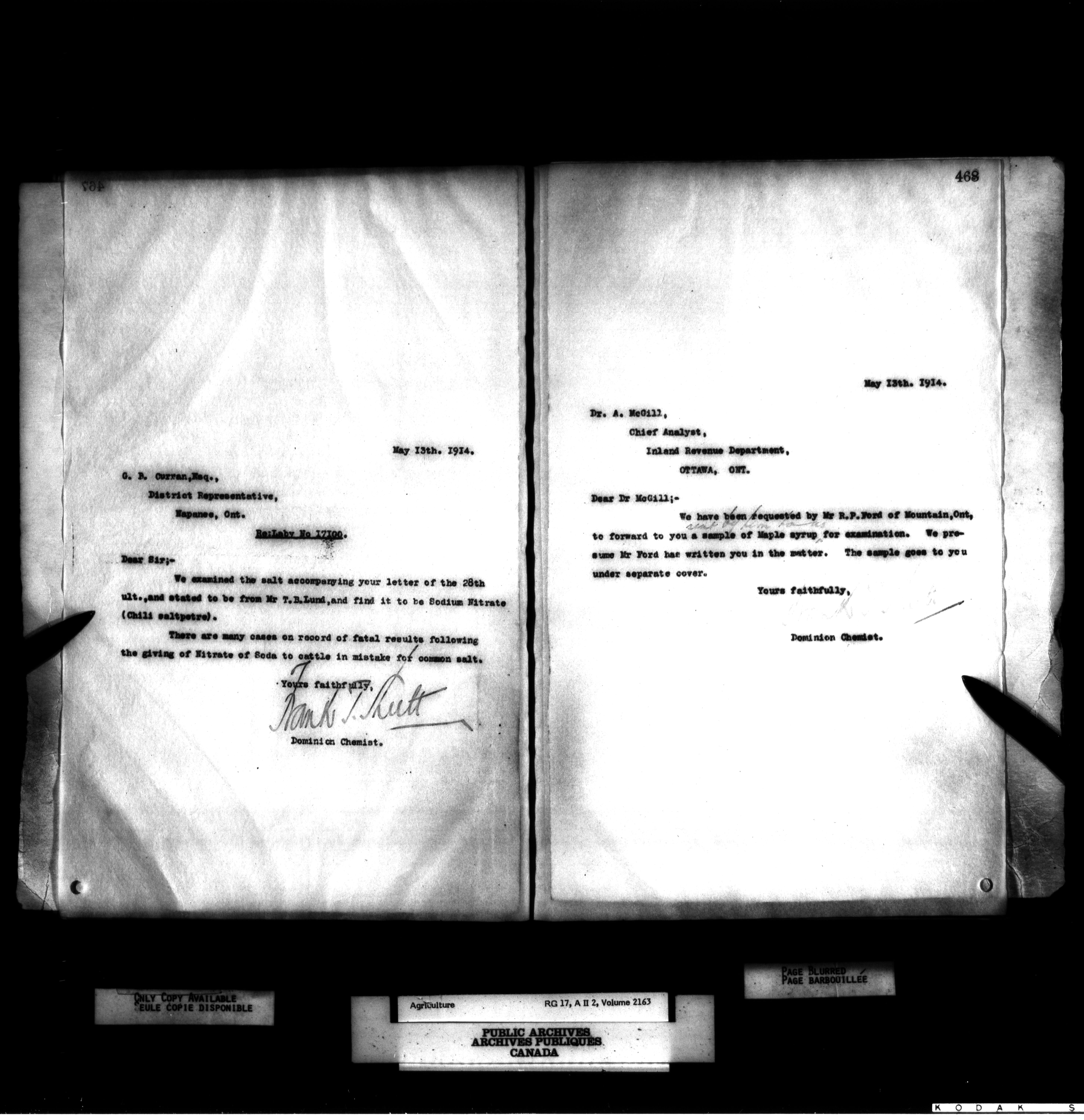 Department of Agriculture : Dominion Chemist, letterbooks - 1075